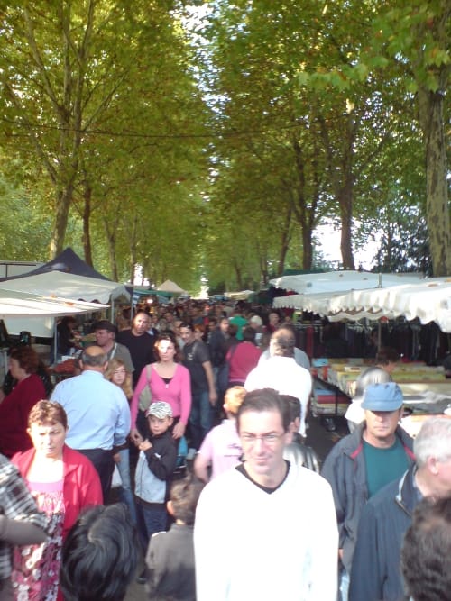 What took us so long? Sunday, the market, of course. Going out this morning, Madame of Hotel Belle Vue advised us to have a look, they have regional foods, French, as if you needed reminding, traditional, to distinguish it from new wave, nouvel vague, non? and coffee, and bread, and cheese. It is the biggest. It is. It was. It had food that made you weep you were not in residence permanently, or at least for a month or so with adequate storage facilities, in order to buy up large and eat it all, all of it. All of it was so edible looking.