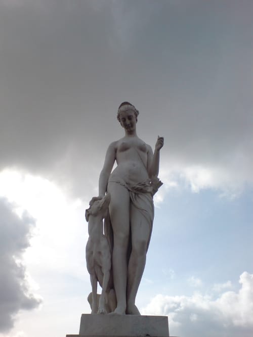 Russians with give-away fringes, eyeshadow, tights and lumpy at the waist, Chinese stepping over us to claim their recliners, Japanese doing everything but diving into the fountain to get that photo of a drake’s head that’ll be the envy of the folks back home, Parisians ignoring the no dogs sign, with dogs hardly dogs anyway, smoking single men, sometimes on cell-phones, with nice watches and trenchcoats, and elegant shoes, German youths, pale legs exposed, sucking on bottles of beer, Spanish families, ushering small children through the melee, maps flapping in their hands, Hawkers with metal souvenirs of the Eiffel Tower, and other knick-knacks, displayed on sheets. Students on class-trips, small ones and big ones. And a slew of international tourists.