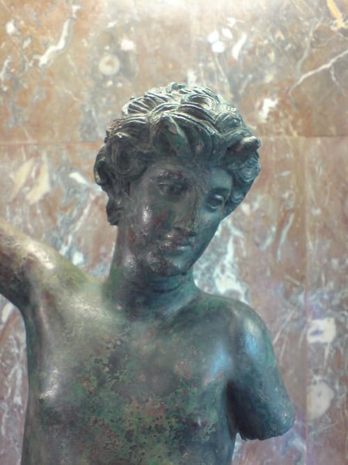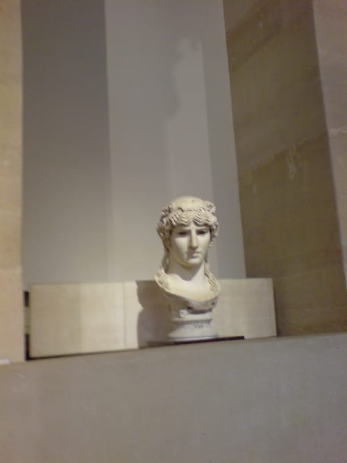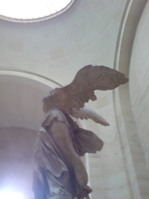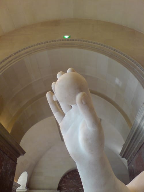 The first star turn we came to was the Venus de Milo. Cameras above heads, partners and friends and fellow tour group members, putting themselves in the shot. Proof of attendance? A funny thing, proof, as our friend Moliere’s misanthrope might say. And all these lenses blinking like a many headed thing, like snakes on a Medusa, were enough to make us misanthropic. What were people doing?