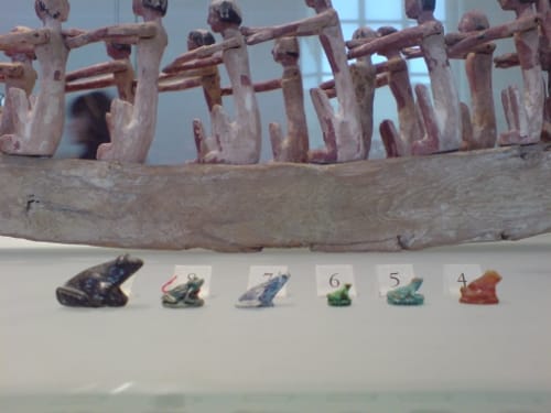 To the Egyptians. The artifacts of everyday existence and contact were well represented. It was interesting that the human figure tended towards idealisation, tended to a general form, with few variations, except for gods, while the natural world was presented with uncanny naturalism; the differences in form being respected, the eye of the artist or artisan generalising according to phenotype. Beautiful fish and birds of every variety. Sometimes a fish would be shown in the hand of a fisher and then would lose specificity as if to say it could have been any kind of fish that was caught.