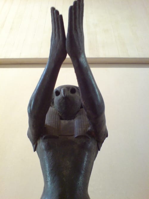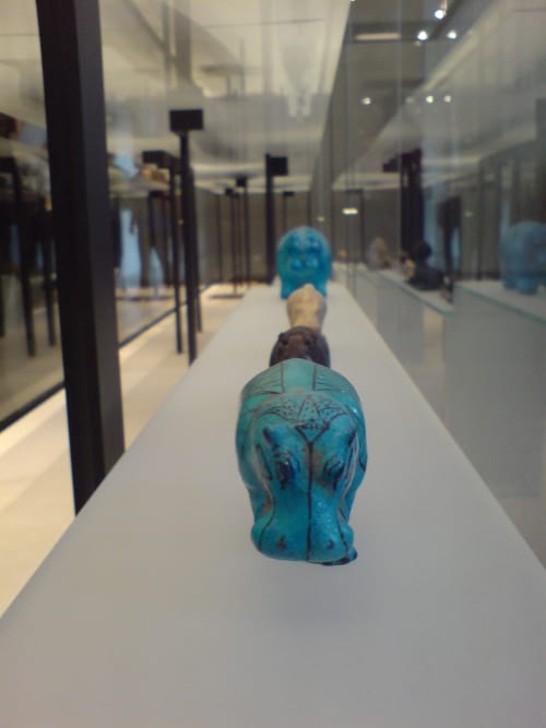 The fineness of the work was also remarkable. Small figurines of gods and sacred animals done in metal or glass or ceramic. Or in ink. All really good to look at. Satisfying. With certain colours that stood out, blues, greens.