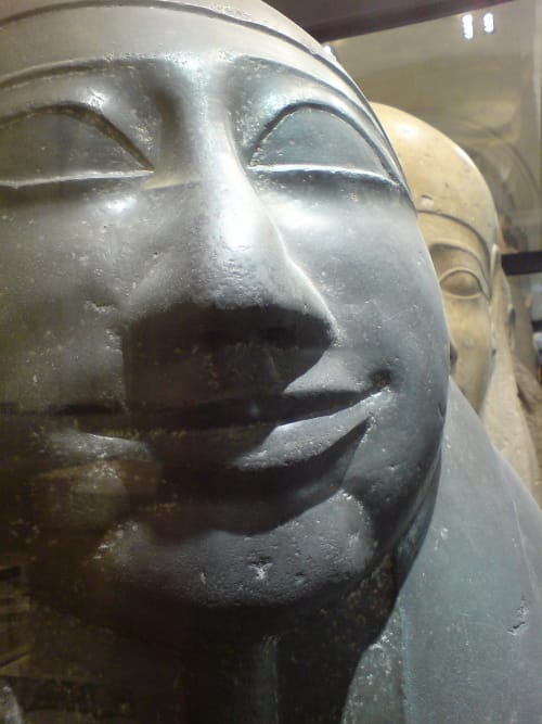 The sarcophagi were stunning, rows of them, some smiling like the Buddha, often more intensely decorated on the inside than on the side visible to visitors, like family, loved ones. As if the perseverance of material form were that to which the dead were supposed to bear witness. An audience of the dead.