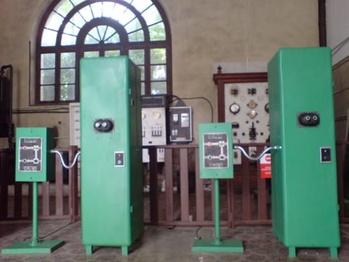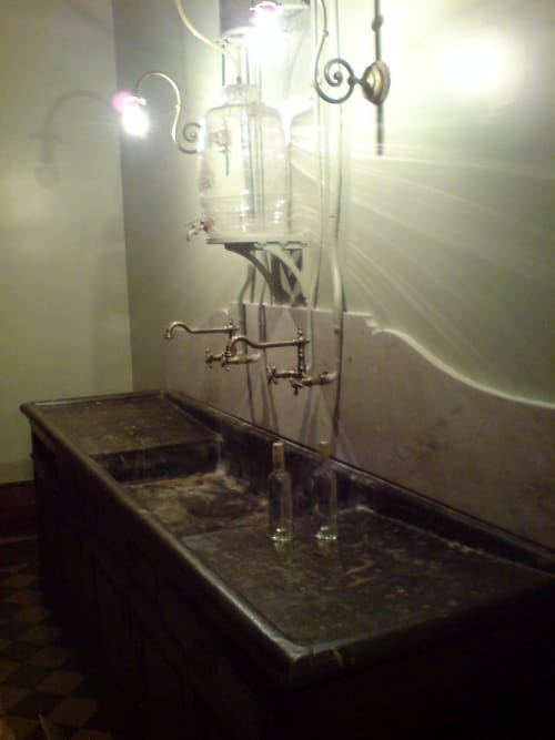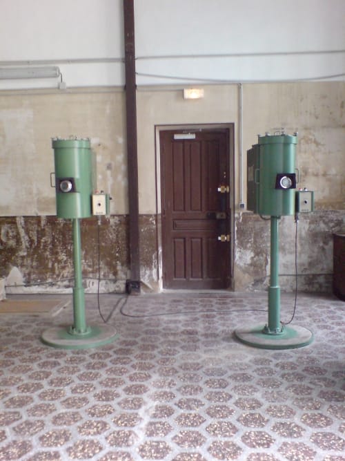 A surreal experience entirely. The out-buildings particularly. The factory, where the old pumps were now housed Dr. Who style stereoscopic view-pumps, emitting a Tardis-like breathing. When one looked in one saw a landscape reproduced in miniature in rubber breathing, rising and falling, in time with the spooky soundtrack. This was the good art. Along with a kitchen full of rows of artificial red apples.