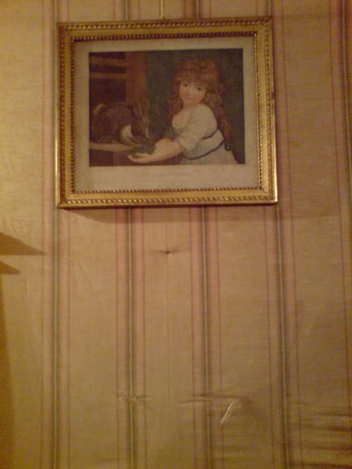 The house was clearly still occupied. From outside, we saw the tower shutters were held open. One could only imagine a Miss Haversham, gone funny with age. Talked into displaying second-rate art by interested parties. What could she have thought? Coming across a paint spattered screen in her dead father’s cousin’s bedroom?