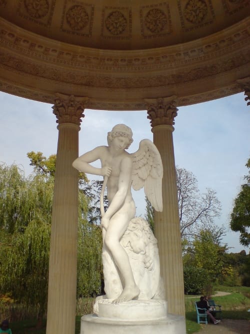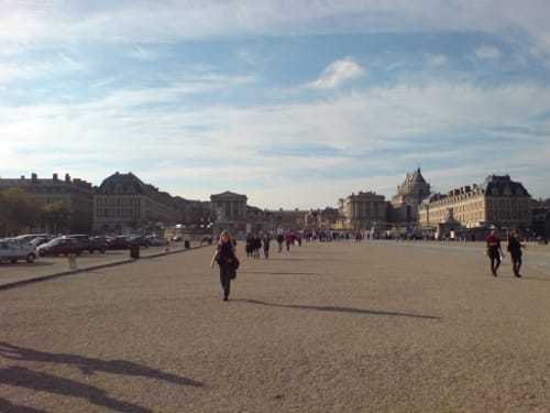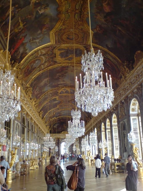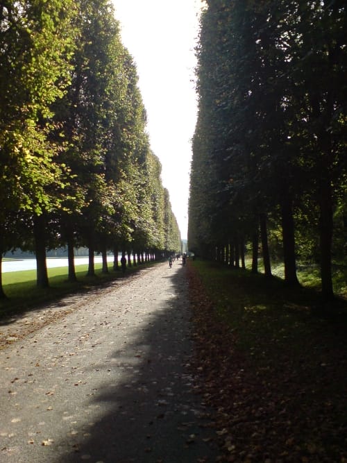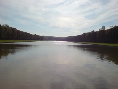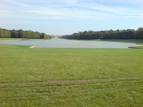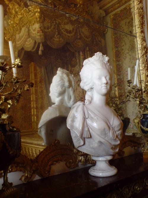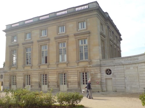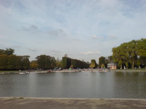 Having been bitten by Versailles before, we ventured out there again. On a low day. And it turned out to be the best day we’ve had in Paris, for weather, blue skies, sunshine, 22 degrees celsius. Unfortunately the fountains weren’t playing. Because if they are there is an extra charge, and otherwise entry into the gardens is free. But we hired bikes and took ourselves out to Trianon, and there had lunch on the lawn. Interesting that Louis XV had such a thing for mechanical devices. In the little house he’d wanted tables that came up from the floor already set. Which he didn’t get. He did get, however, the mirrored panelled walls or flats that could be raised or lowered into slots in the walls in the upstairs rooms.