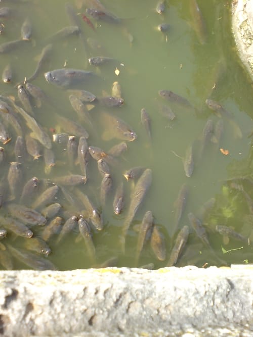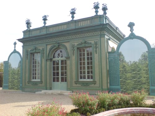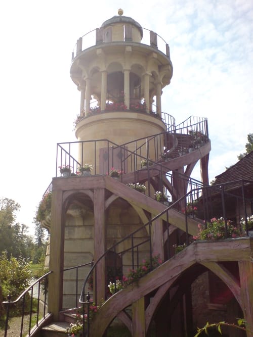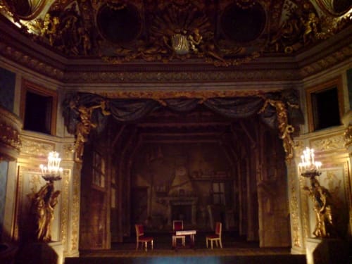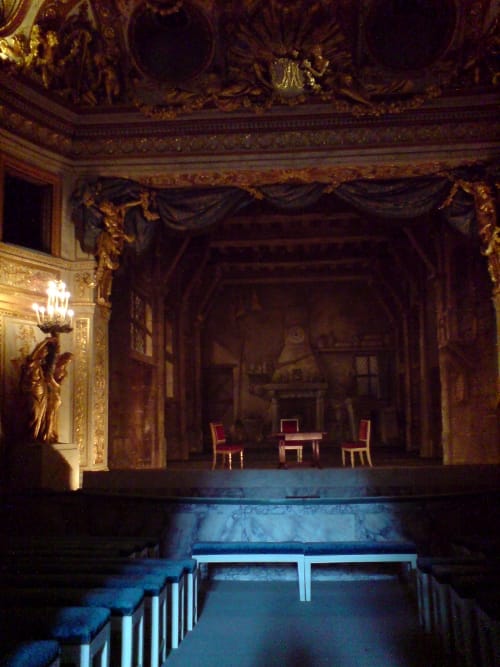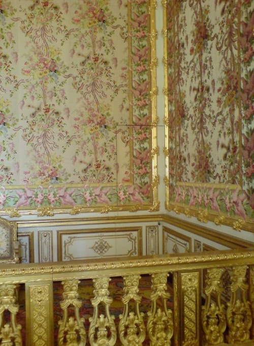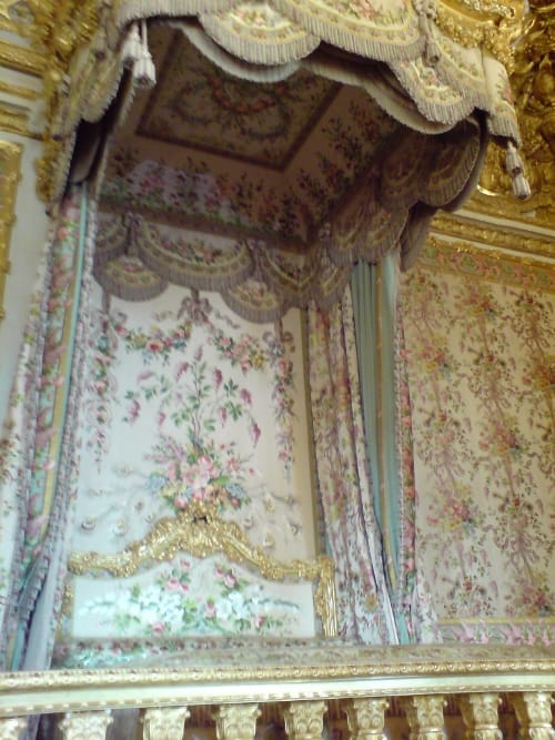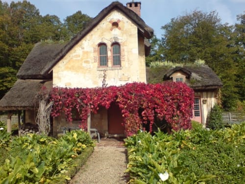 The whole of Petit Trianon was marked with her character: the Hameau, and its thatched collection of eccentric ersatz farmhouses, including a mill, a laiterie, and working potagers; then with the wonderful whimsy of a light-house, setting-off point for boat-trips and fishing expeditions. Although, with the number of cat-fish we saw in the pond you might just as easily walk across the pond on their backs and pluck them up in passing. And the theatre, where, being Austrian, she found it a good lesson in French to perform. A perfect miniature eighteenth century theatre. I overheard a guide here explaining the length of scenes in those days was timed to coincide with the wick-time of the candles used to illuminate the scene. It also bespoke M.A.’s attitude to the kids. The Hameau, or farm village, was supposed to serve an educative function: how real people get along with providing for themselves.