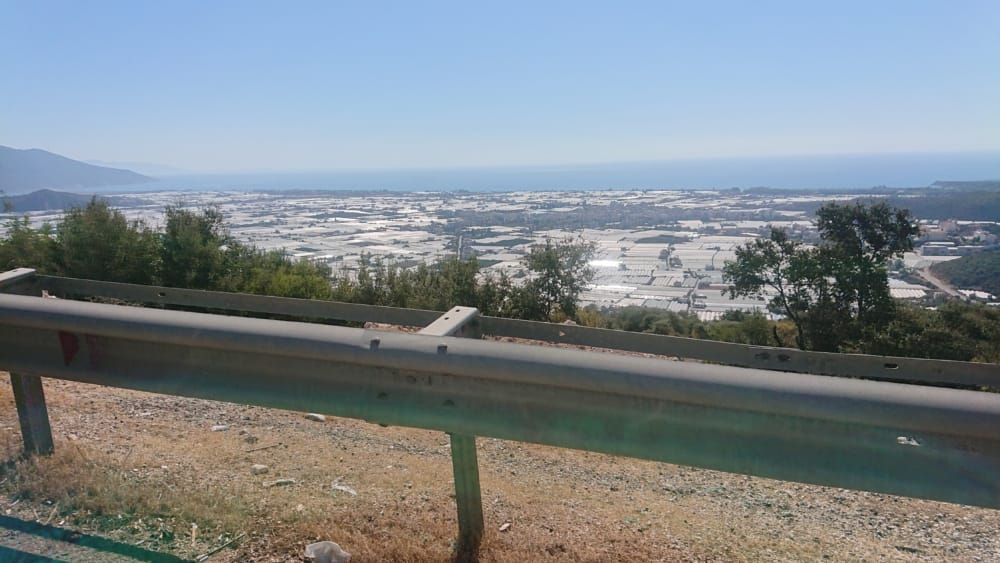 and up into the hills behind Kaş. Up and around, and down, single-lane, on the hillside, until,