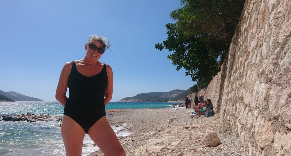 Either they were good friends or we’d struck the only gay friendly accommodation in town, the couple we’d had to wait for to leave so that we could get into our room, clearly a couple. The hosts insisted on photographs with them before they left; the hostess insisting the men also embrace her and not just each other. Leaving, they said, Thanks for everything! As if there had been an ‘everything.’ They squeezed into the two-seater van, one in the back, and Erinçe drove them to the bus station, the gar, a huge place we passed on the way down to Kaş.