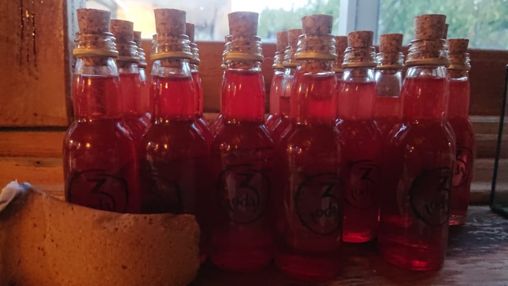 Bottles of St. John’s Wort oil on the shelf, for sale. For use in cooking, it probably accounted for the chilled out atmosphere of this beautiful and tidy operation,