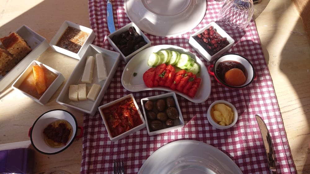… sad to say hoşç kal to oda 3 Kaş, but breakfast with our friends from Malta, the marketing person and the yoga instructor, both with low voices, unpickable accents, the former bon vivant, the latter underfed (swapping facts: