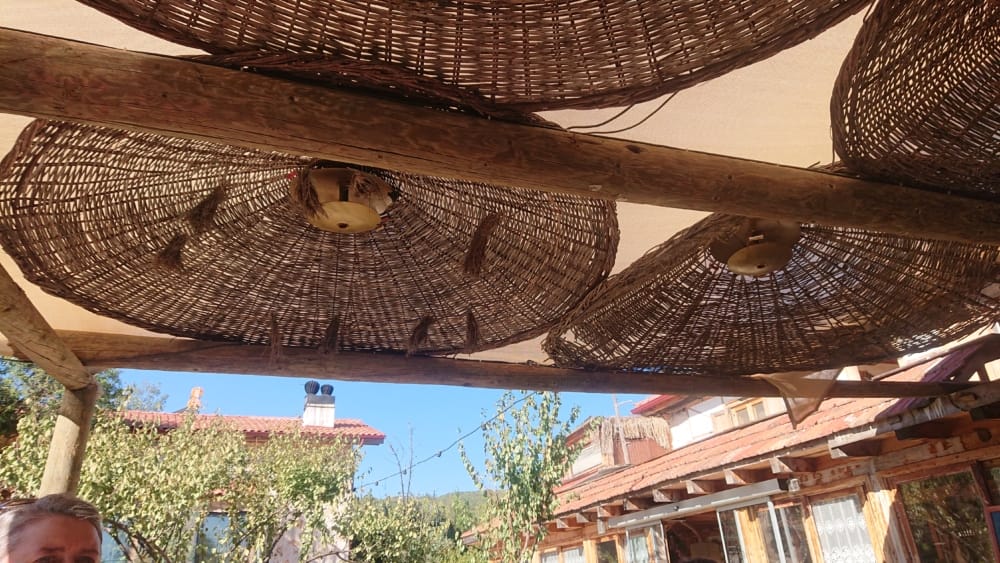 This again points to a similar expurgation from the history books in the West of the Eastern Roman Empire, without which European history does not make sense. So, European history, Byzantine history having been cancelled, does not make sense. It also leads to odd connections: We rolled in to Dalyan marvelling a the quietness, the provincial quietness of the place, and its verdure … found our Karaca Apart Hotel, nextdoor to Honeybee. Entered our Ottoman-style room to find it a suite, with 2 bedrooms, a living room, kitchen, lounge and balcony. The proprietor said, You are very lucky, Jo. To find, that is, our Ottoman-style rooms decorated with tiles, an orange rug, purple sofas with dark scateboard-like wooden armrests on short chrome supports, the throws on them lime green, waffle-weave, done with floral motifs in a peasant style. Add in a pendant light-fitting with Triffid-shaped glass shades, in the bedroom an extraordinary confection in a glass cylinder involving a coloured glass animal and woven glass basket to catch the light … but, rather than that, catching, through poor design, the cylinder open at the top, simply, dirt.