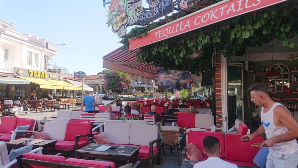 At the supermarket (checking out where we might eat along the river we met Dave. Dave blustered and burbled on repetitiously about what was good, and where. 18 years ago he came here. Why come back? I asked. The food is generally good, and the people, apart from driving like maniacs, are friendly. Iztuzu beach we made the mistake of asking about. Dave chewed up his face as if the synapses connecting the speech centres with it were spaghetti. He managed to inform us that the beach is not only accessible by boat. You know where the giant turtle fountain is? You can catch a dolmuş from there. It costs only ₺200. Or you can take your car. When you get to the beach you pay about ₺200. You can follow a dolmuş in your car. One end of the beach recliners are available for hire. And at the other end of the beach recliners are available for hire. In the middle there is just nothing. If you are lucky you will see turtles in the estuary. Iztuzu is called turtle beach because the turtles go there. You can get the boat around to the beach. It costs ₺250 each. You can take the car. If you are worried about getting lost you can follow a dolmuş in your car. Where you arrive in your car there is nothing. You can take the boat; but you can drive out there to Iztuzu. You can also take a dolmuş. You can also take your car. The boat costs ₺250 each. You can hire recliners at the beach. I once, believe it or not, walked from one end of the beach to the other. It’s 7 kilometres. It took me almost an hour. Meeting Dave encouraged us to buy some food at the supermarket and prepare dinner at the Apart Hotel.) there are two items available at the checkout counter. Bepanthen and condoms.