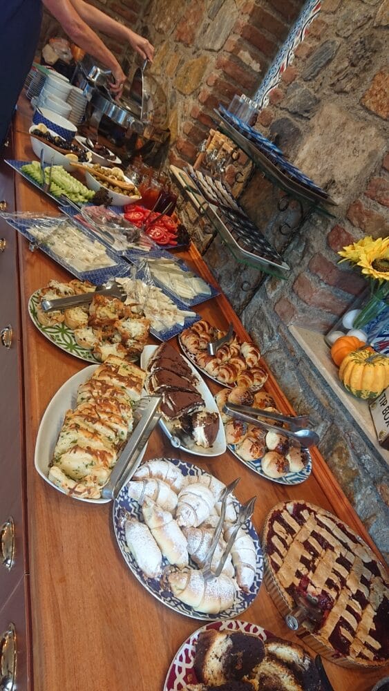 (The concierge and porter here set out the breakfast; obvious, in the choices of baked goods and the absence of fresh ones; I discovered a love of cake for breakfast.)