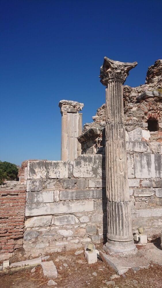 Saint John is buried up the hill. This is the Saint John Hotel. Saint John, not of the forearm, was the youngest apostle, son of Zebedee and Salome, who looked after Jesus’ mum and accompanied her to Ephesus, where he last was at; as I said, up the hill. Under the basilica which if it had survived would be the 7th largest in the big churches league, in the world. He’s most familiar as John of Patmos, was Mary’s constant companion …