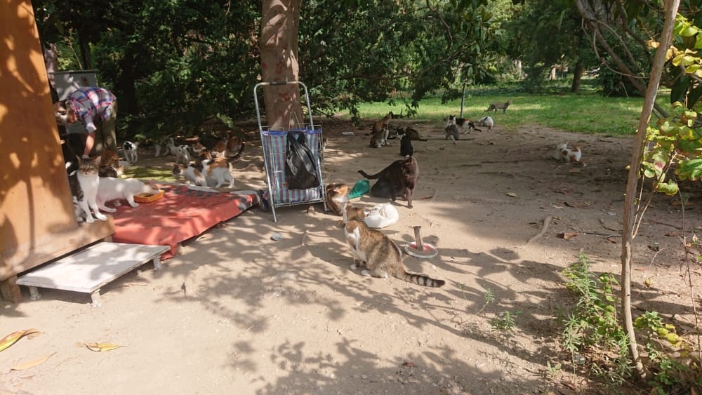 A chintzy area, restaurants, women in Med white, sprayed hair, heavily made-up in what passes for good taste. The sounds of a brass band. And everybody on the street stood at attention. Arms straight down by their sides. Even the cars stopping. A square where the band was playing. Rows of white-flat-topped hats, the navy, soldiers in khaki, police in dress uniforms, all in rows before a podium and surrounding the scene more police, jandarm, even riot-ready police with plastic shields, helmets and batons at the ready. The tune, we imagined must be the national anthem ended, and everybody came back to life, except the massed armed forces of the Republic. The fishermen went back to fishing in the toxic purple waters behind the breakwater, rubbish being pulled up more than fish. Although we did see one good-sized fish brought in. Back up the drunk-killer-steep steps.