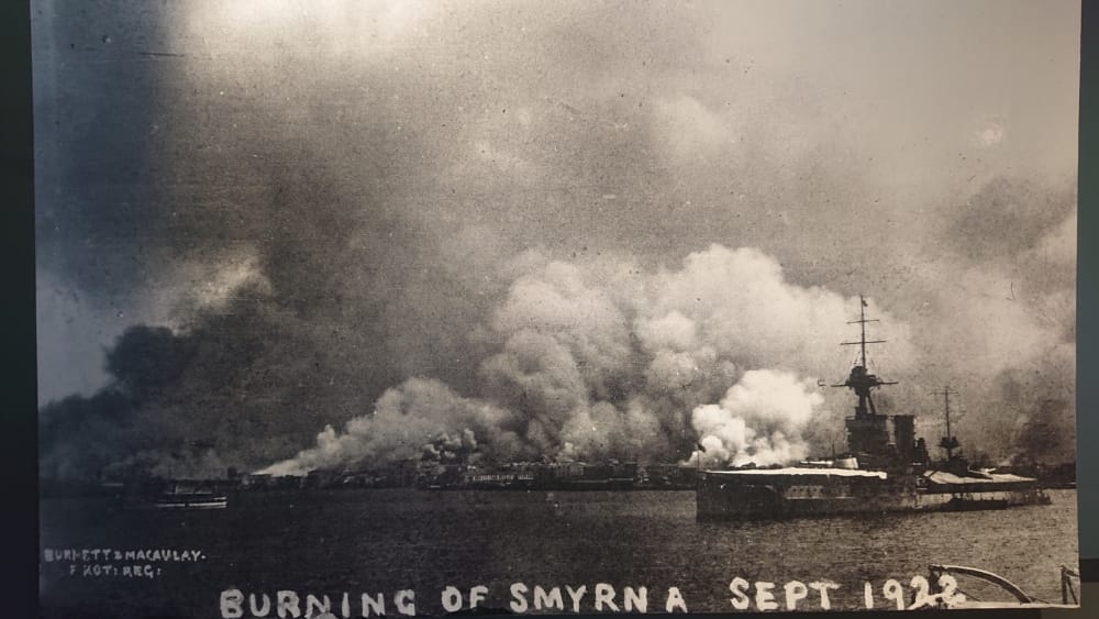 It was. A. Bit. Dry. Printed display boards and the odd display case. One with boxes from the early 1900s, Camel Figs. Smyrna. printed on them. A brand image very close to that for Camel cigarettes. A picture of Greek soldiers in the uniforms that resemble tutus, tights and slippers. A picture of Smyrna on fire in 1922. This, the decisive battle, for Atatürk and, presumably, for Turkey, since without it it would not exist.