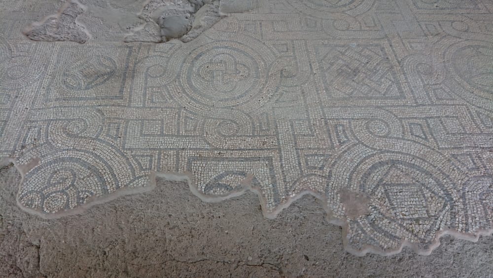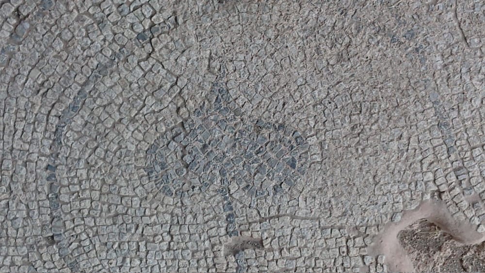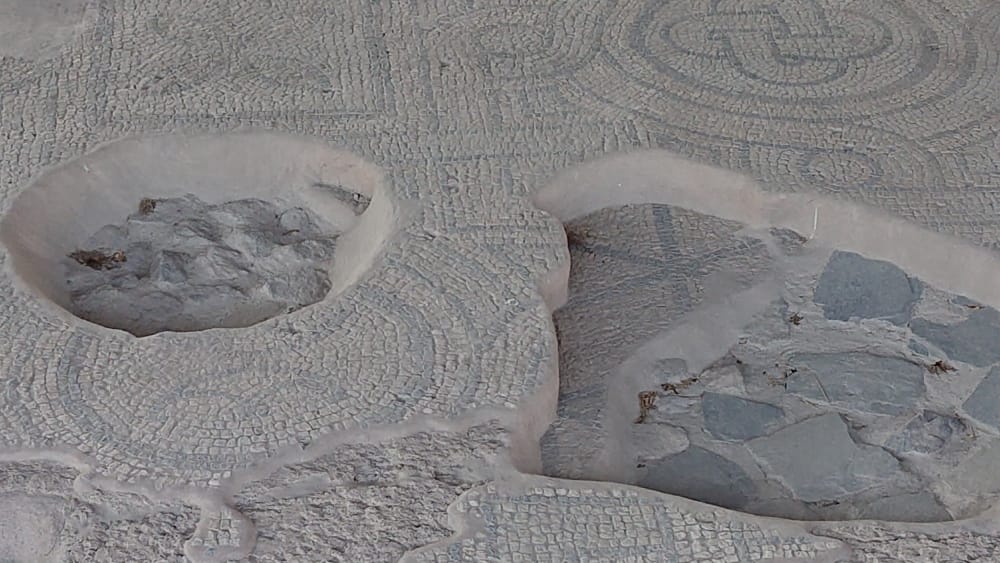 detail showing lower layer of mosaic floor tiles, curiously similar to those above,