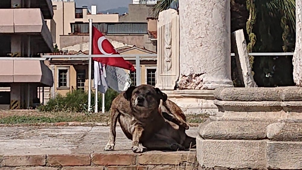 J brought some photos back from the WC. I’d shown her my ‘Dog Scratching below Turkish Flag.’ She bettered it with ‘Toilet Cubicle with Sleeping Dog on Floor’ and ‘Second Toilet Cubicle with Sleeping Dog on Floor.’ Surprising for a WC visitor since the lights were dim inside and dogs very still and quiet in the cool.