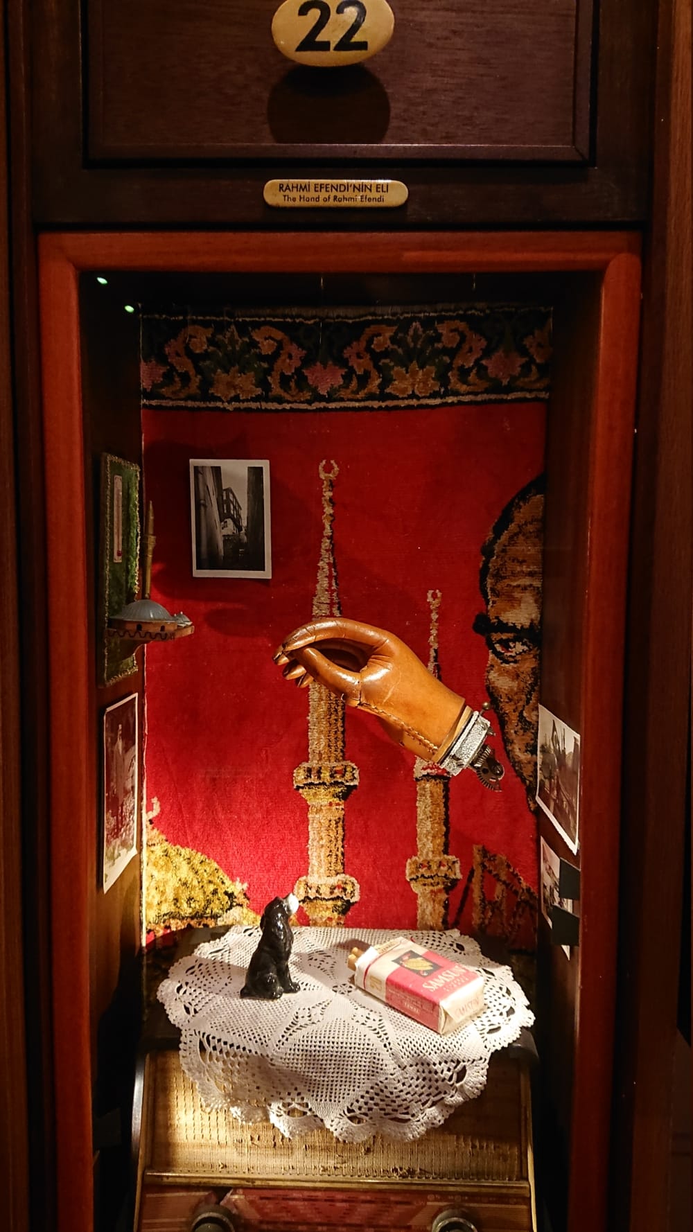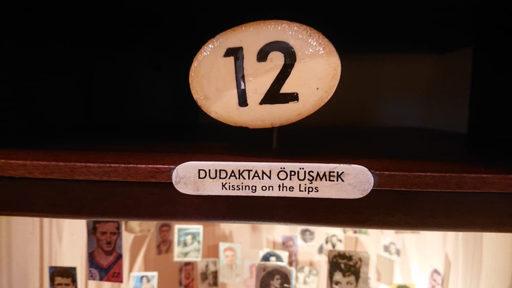 A small building up a steep hill. Right turn. Stands out because of the orange-umber colour. Laconic ticketseller told us only number 69 was on the ground floor and to start upstairs. Fore-advised we took the audioguides. To spend several hours immersed in a world in which the objects, the collections, the curation of them, and their juxtaposition, are the speaking subjects. What we hear are excerpts in the voice of Kemal and commentaries in the voice of Orhan Pamuk, but adding to this mixture are the conversations given by the latter’s report; Kemal is installed, says the author, curator, creator of the museum and novel, in the top floor. And throughout the process of building the museum he and Orhan conduct extensive conversations on the various boxes, their composition and contents–as well as that of the overall museum. They also discuss events of the novel. Kemal has in fact told Orhan the entire story which the author had simply written down. This process comes to life in the making of the museum that Orhan reports on, he and Kemal, in the upstairs bedroom, where Kemal spent 7 years, drinking rakı late into the night, and no doubt smoking cigarettes … discussing the various problems of presenting a chapter of the novel, that is a chapter of Kemal’s life, in each of the boxes. And the workshop busy downstairs building the display cases, with their cleverly concealed lights. Here are a couple,