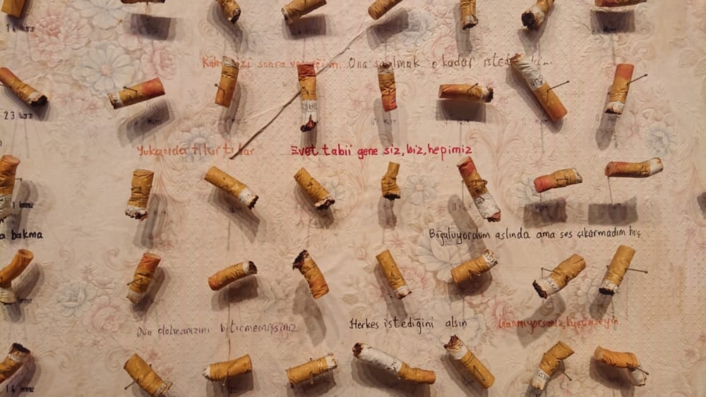 The relics of Fusün, her cigarettes, that Kemal carefully collects, sucking on some to get the flavour of her breath (cf. relics of the Prophet in the earlier post or St. John the Baptist’s forearm). Under each cigarette–a short note, dictated, says Orhan, by Kemal. And some nights he found he could write many such short descriptions, placing the cigarette butts, and others he was at a loss …
