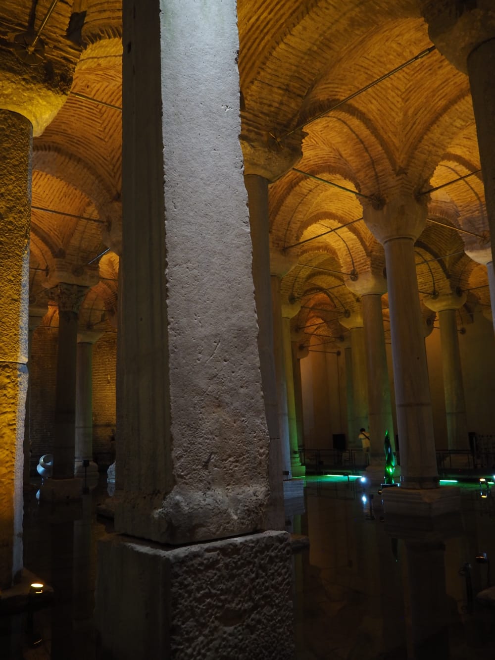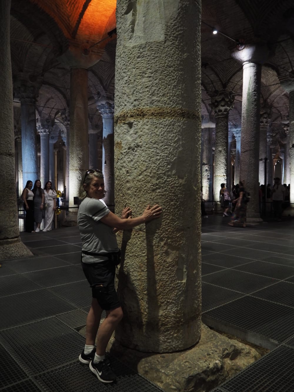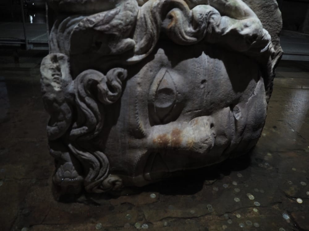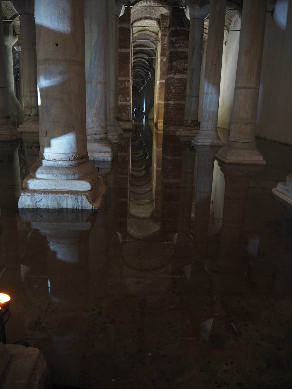 We were headed for the ticket offices, to buy tickets for yarin, tomorrow’s ferry to Bursa. Accomplished, we queued for the Cistern Basilica, Yerebatan Sarnıcı, TK1800 for two. For a hole in the ground that up until 100 years earlier was a place to dump bodies and other rubbish.