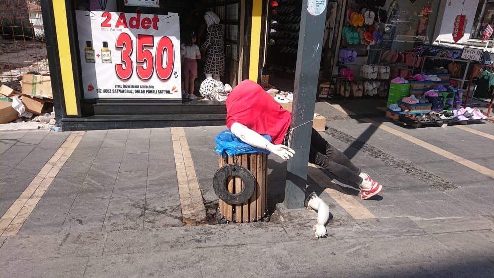 lotta life going on in Bursa. The guy on the scooter represents all the guys on scooters who barrel along footpaths all over Türkiye. The boy is about to let loose a string of bubbles.