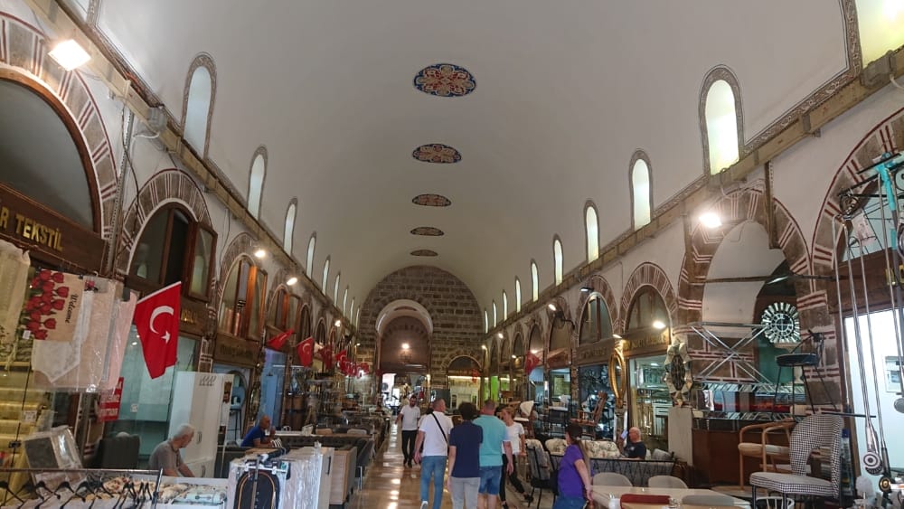 Roomed up, we went wandering uphill towards where reception had directed us (to “some good restaurants”) and got a Oses Çiğ Köfte each, the flatbread smeared with muhammara paste, fresh mint, fresh coriander and cans of sarsaparilla, yummo! Got some directions in Turkish to dolum our Bursa bus cards that I understood and topped up in the hardware store having another little Turkish chat, then bus-a-Bursa! we were on our way … somewhere. Which, after a metro ride too, ended up being here,