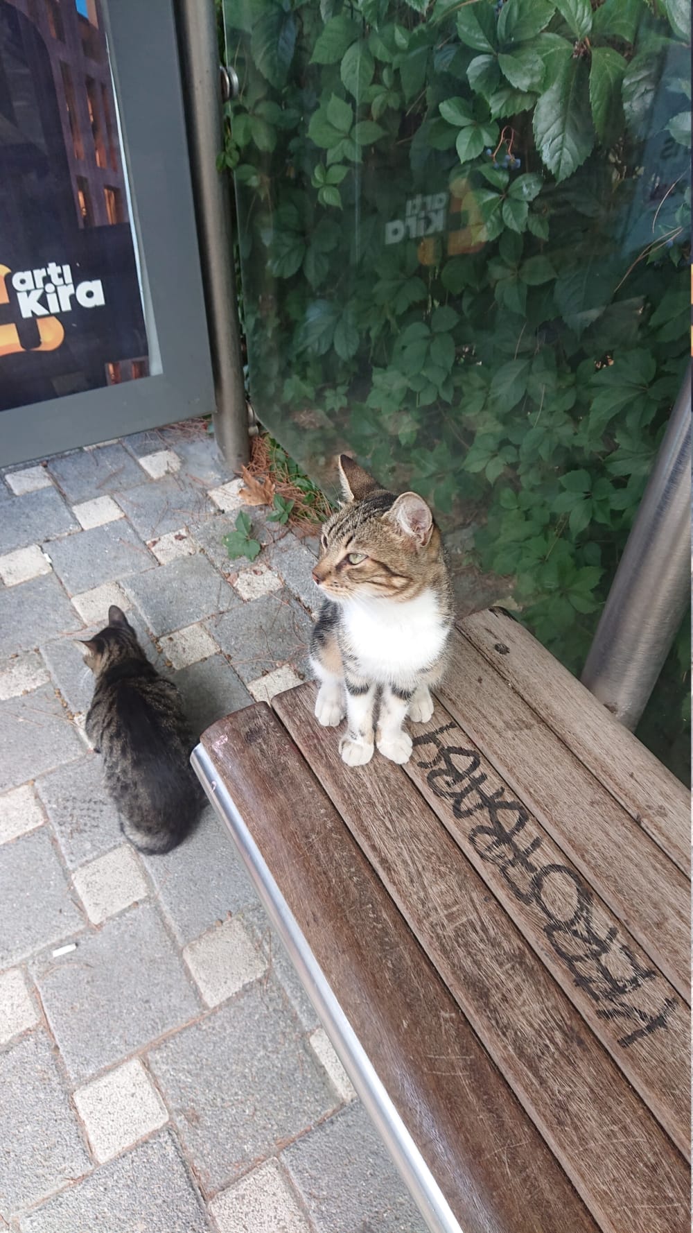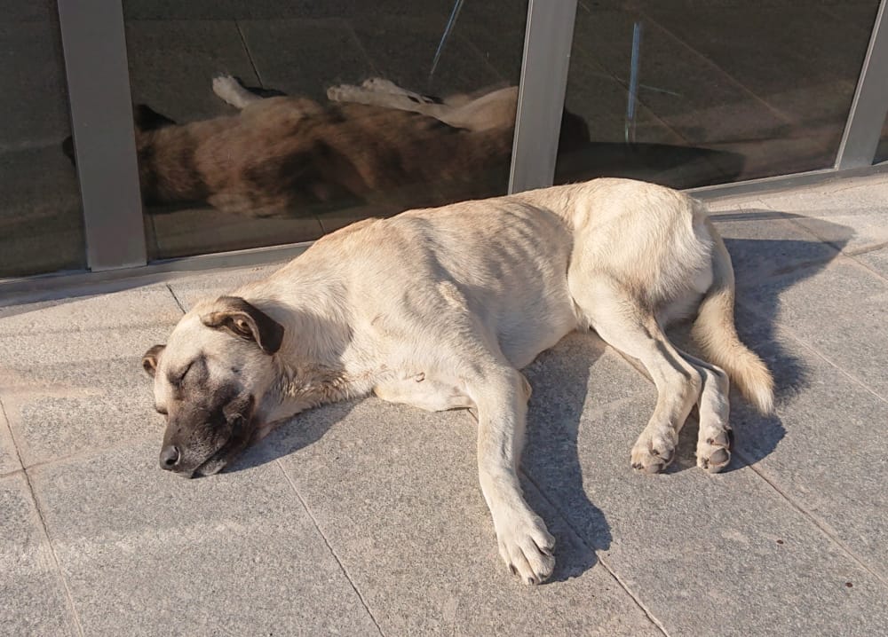 Kangals the most common street dogs … most commonly seen soaking up the warmth, rather than in Orhan Pamuk’s report, roaming the streets of Istanbul in packs … the presence of cats and dogs (and to call them street animals or strays is to miss this) humanises or mammalises the environment. The animals are people too, the humans not so special. And that animals are respected, fed, cared for by all and not owned, that is owned by themselves, seems to make them respect their environments more: no dogs pissing on everything in sight, having to mark territories; no shit everywhere, in fact, in Eskişehir we saw a cat, balanced on its rim, peeing into a rubbish bin.
