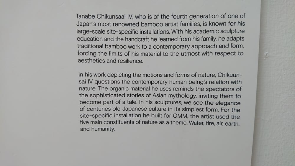 Tanabe Chikuunsai IV’s site-specific installation for OMM (link here),