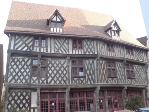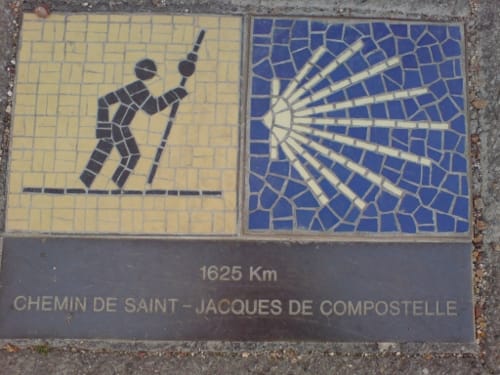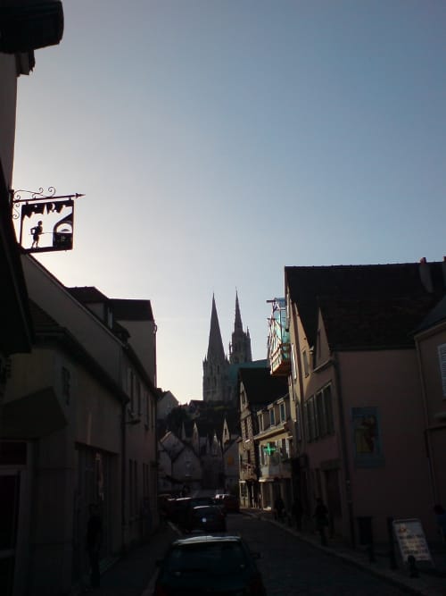 Chartres Cathedral overwhelmed us with its dominance over what is in fact quite a large and very pretty town, the old part at least. We climbed the hill on which it floats. It really does. Past the half-timber medieval structures. The bulging walls, and overhangs, familiar now, from Italian towns. To the start of St. Jacques’ pilgrimmage.