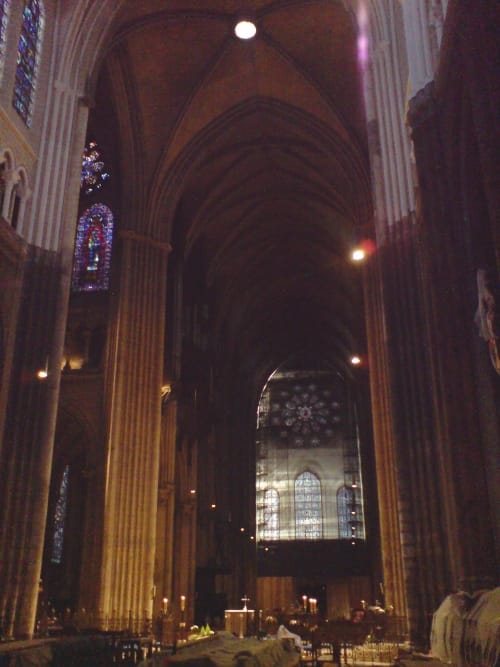 Inside, the Cathedral gave us what Notre Dame could not, a religious experience occasioned by the grandeur, the age, the sense of the building, an ascent of weight in stone. Stone flying upward. Making mere bodily assumption seem quite plausible.