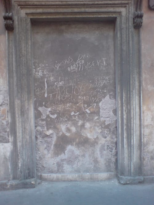These lanes around the back are where the street-‘performers’ come to put on their make-up. They detract from the monuments because in playing statues they exactly are not. That is the fascination. Living people next to marble people. Those for whom time stopped, those for whom the jingle-jangle of coins in their cans proves the obverse, that they are getting ahead. Making a living.