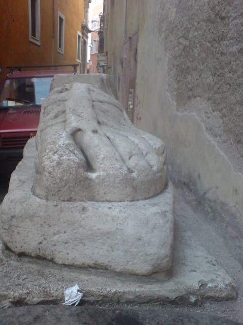 a splatter of water in the backstage of Trevi, where the clowns come to apply their make-up. It is not necessarily my insight that they are clowns, the performers of the freeze-frame dotted all over, distracting attention away from the actual monuments. Freeze-frame clowns. Or, clowning has really gone to a dark place: a state-man frozen in the act of being a drunk bum, wearing dark grey make-up, almost metallic.