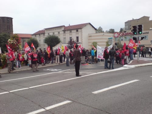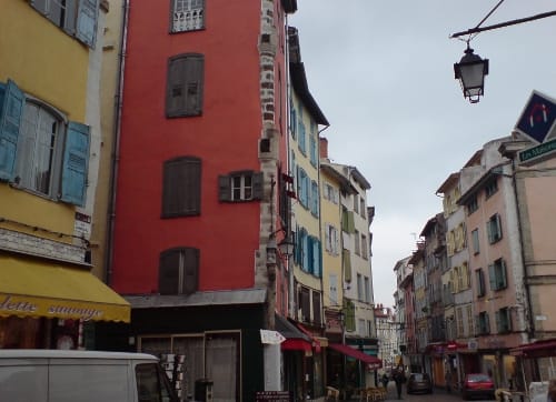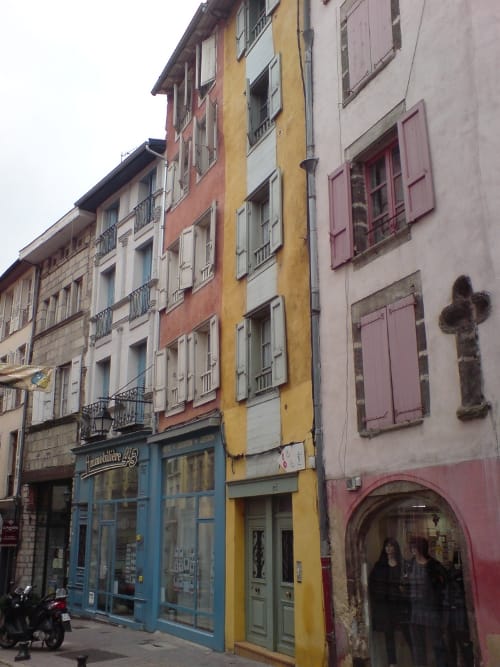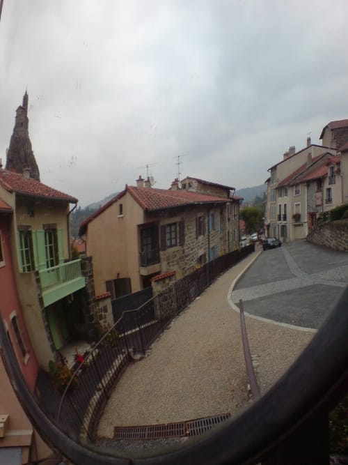 Le Puy is still fantastic, despite today’s dull weather, dull light, chilliness. Sucked in again by the offer of breakfast at Hotel Bristol. It was a buffet, as the receptionist had said, but one comprising nothing hot, and nothing cooked, apart from boiled eggs. Which, when cracked out of their shells, were stinky. J. saved me from eating them. Pointing to the distinct green to grey tinge around the outside of the yolk. Cereals, choco and cornflake. Crusty bread. Brioche loaf, which looked like sponge-cake. Croissants, tiny ones. Noisettes, sealed in plastic. Mini pains-au-chocolat. Ham, six slices on the whole buffet, under a perspex cover, with butters and cheeses in foiled pottles, and yoghurt and puree of some kind of fruit, one hoped. Coffee, tea, hot chocos, came out of a machine. The redeeming item of degustation, grapefruit and orange juice in glass dispensers.