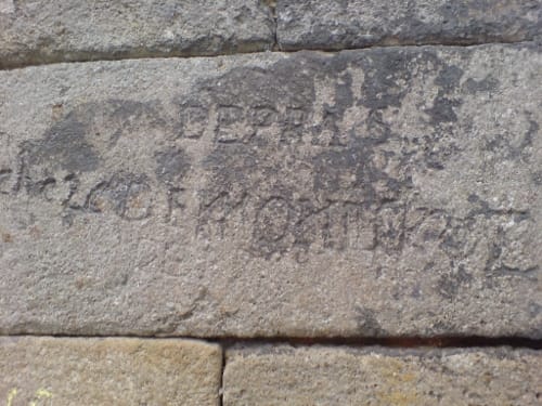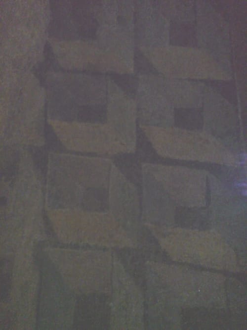 On the way we discovered another pilgrimage site we’d missed before, a small chapel dedicated to St. Clair, with a square beside it, magic, or a Magic Square, tiled into the square, this very clever acrostic: