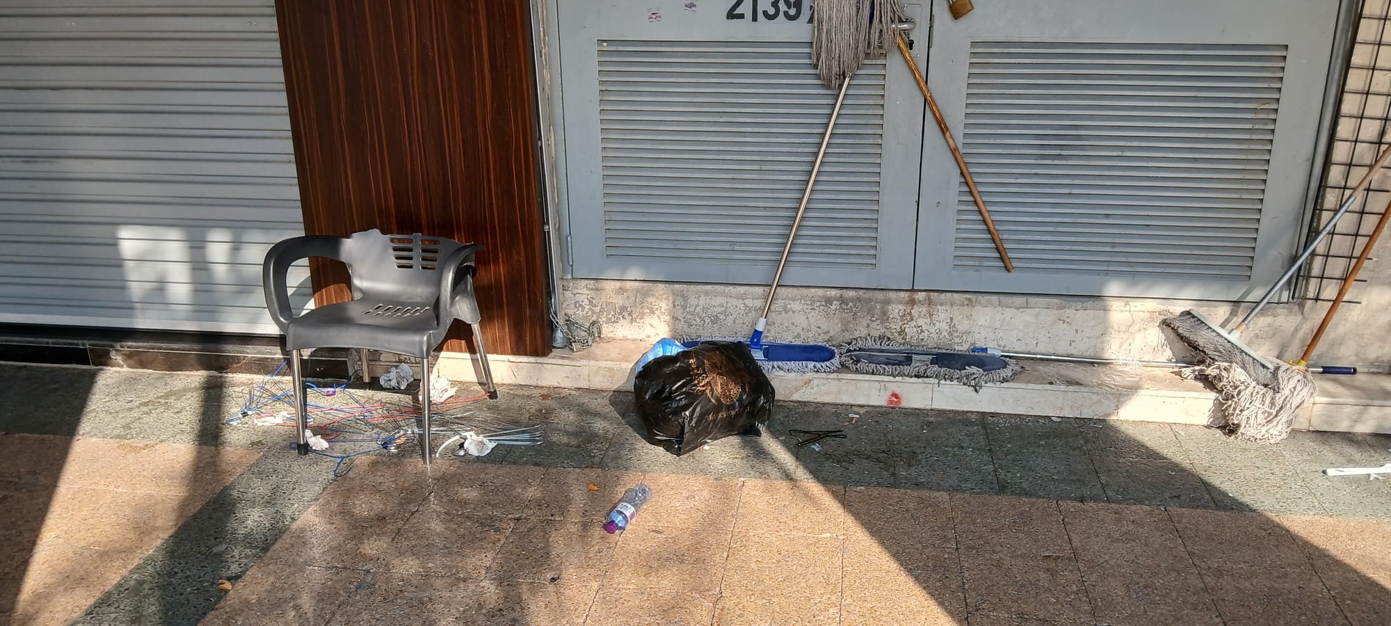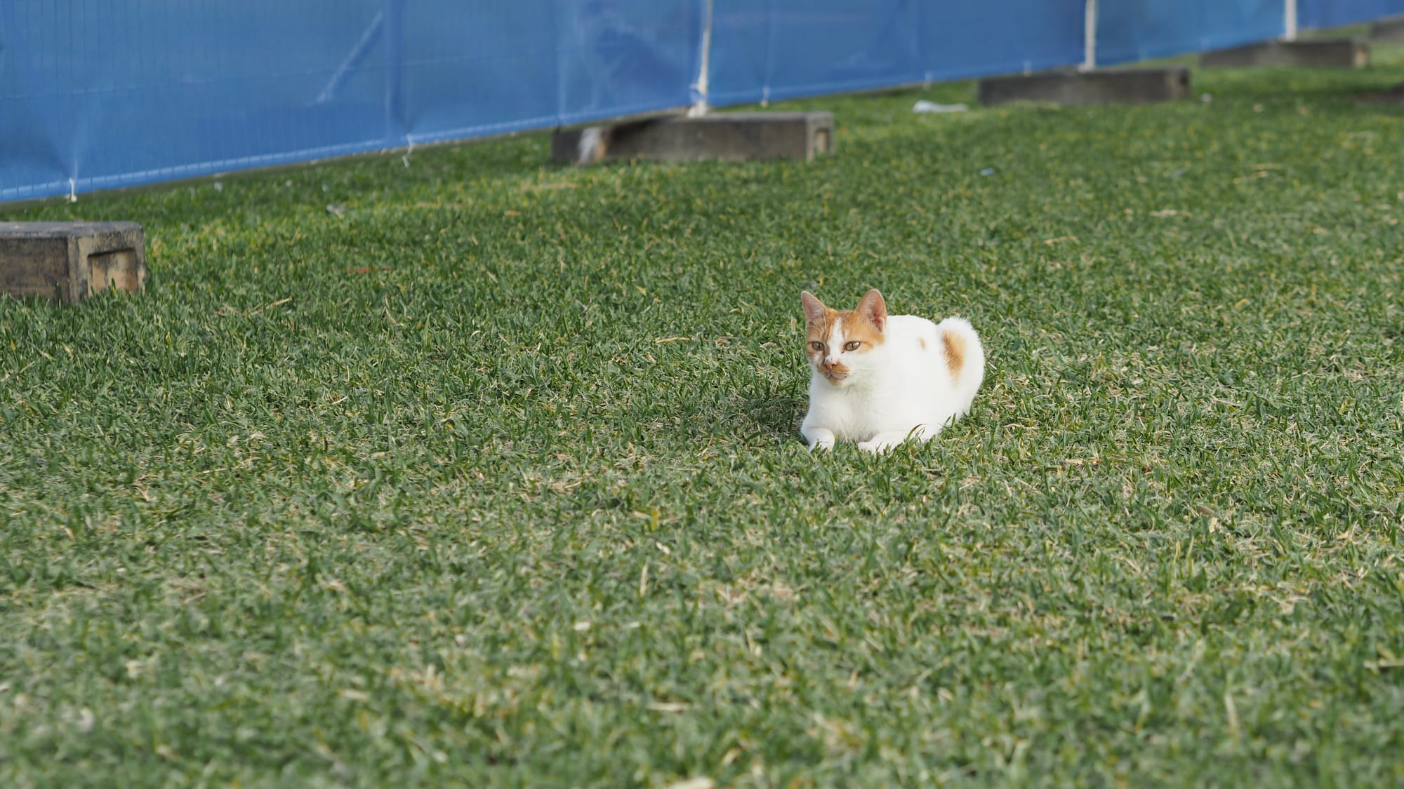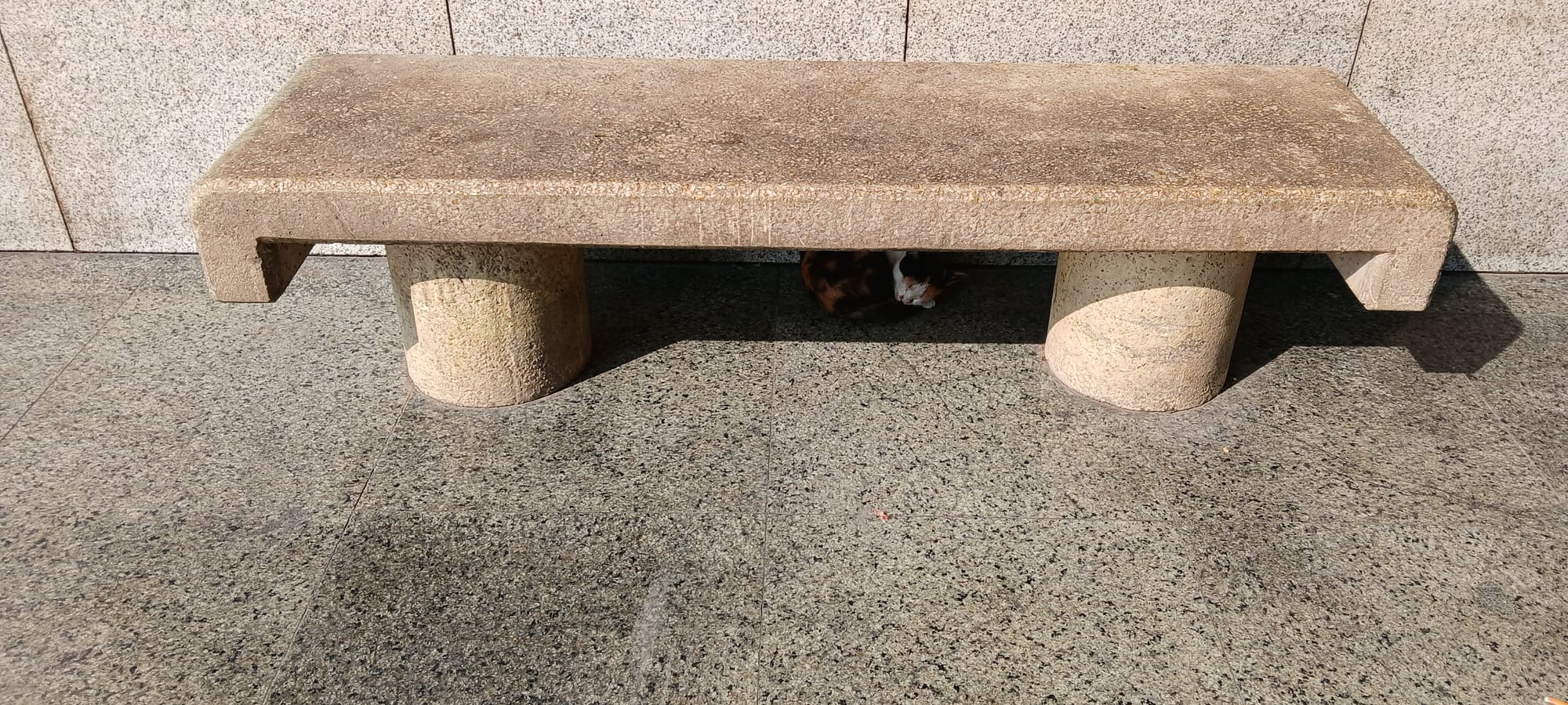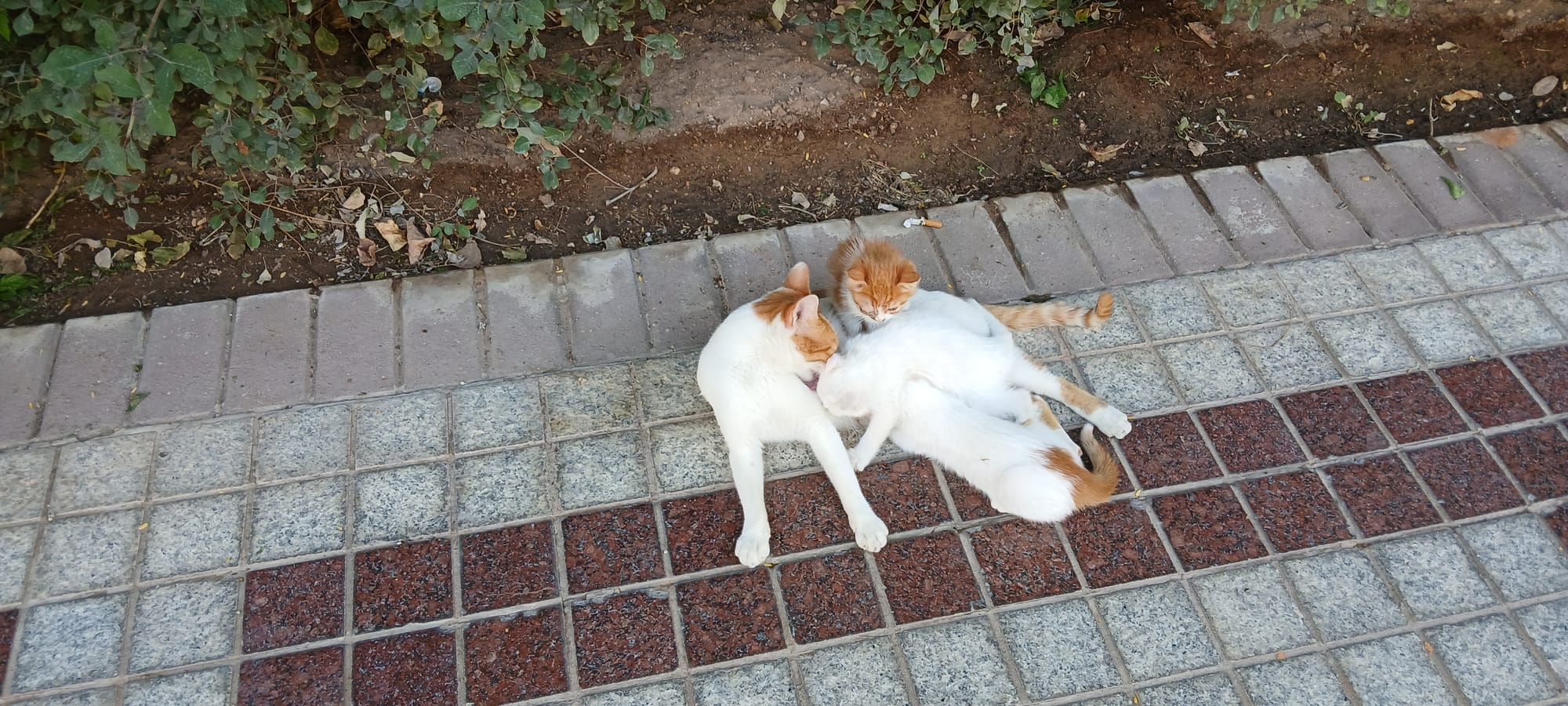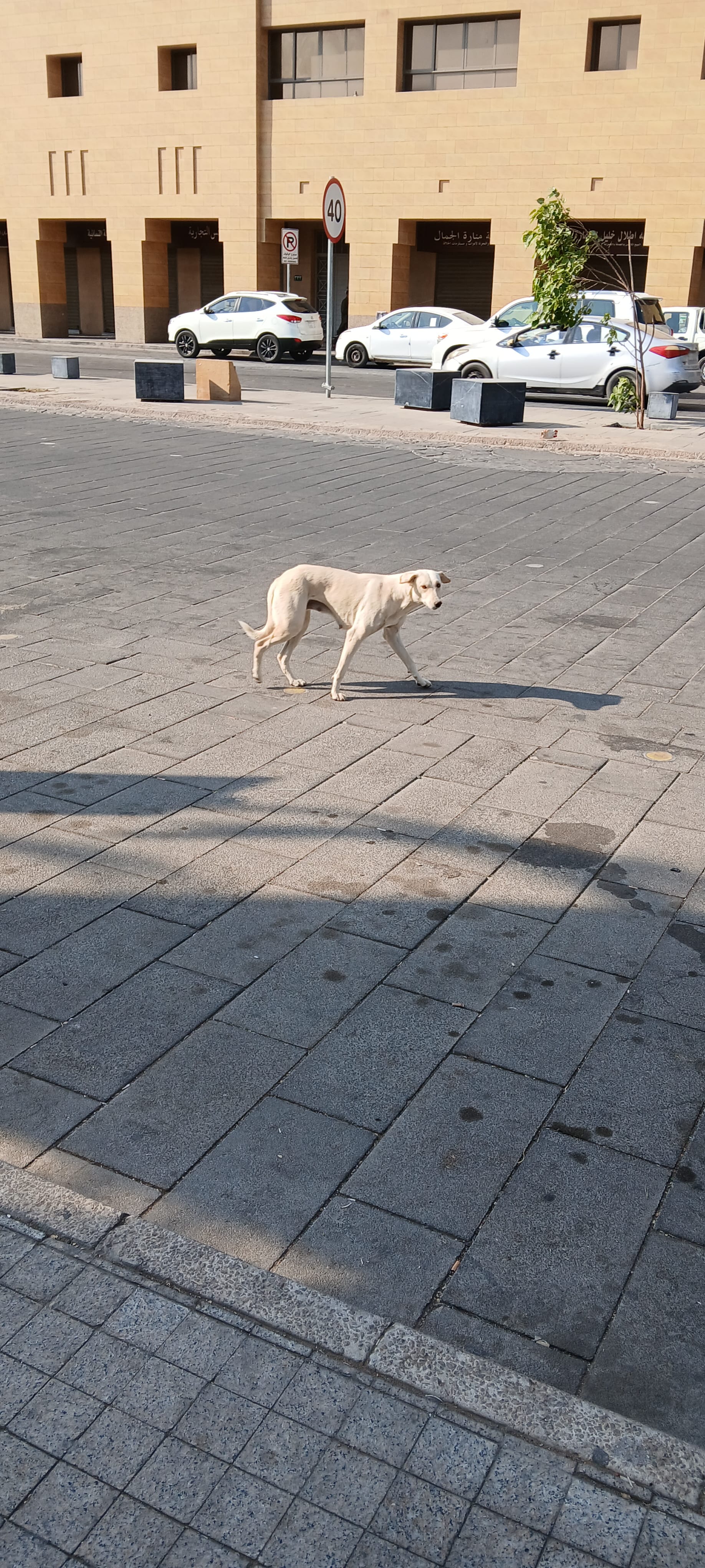 the cat under the bench, well, that's the bench where I ate my samosa. . . and a rare dog sighting in central Riyadh. . .