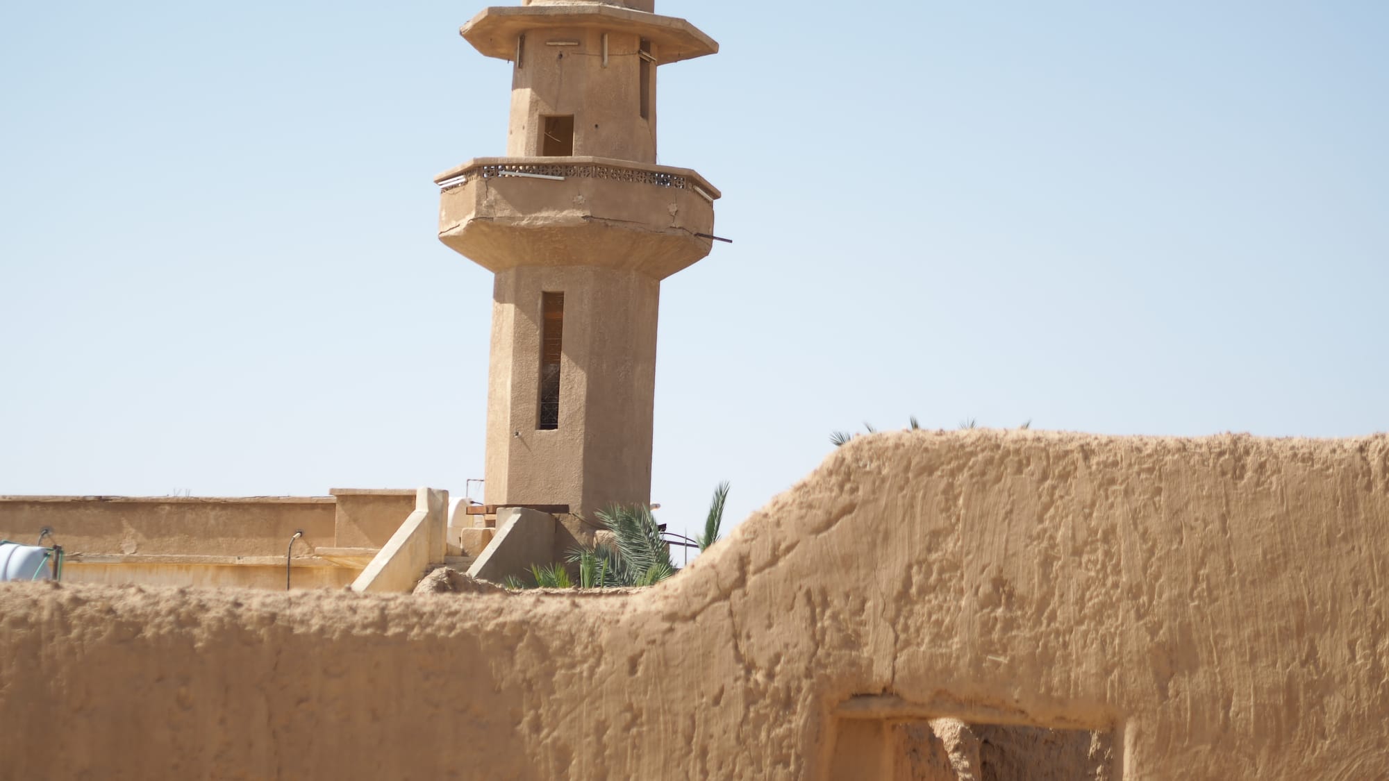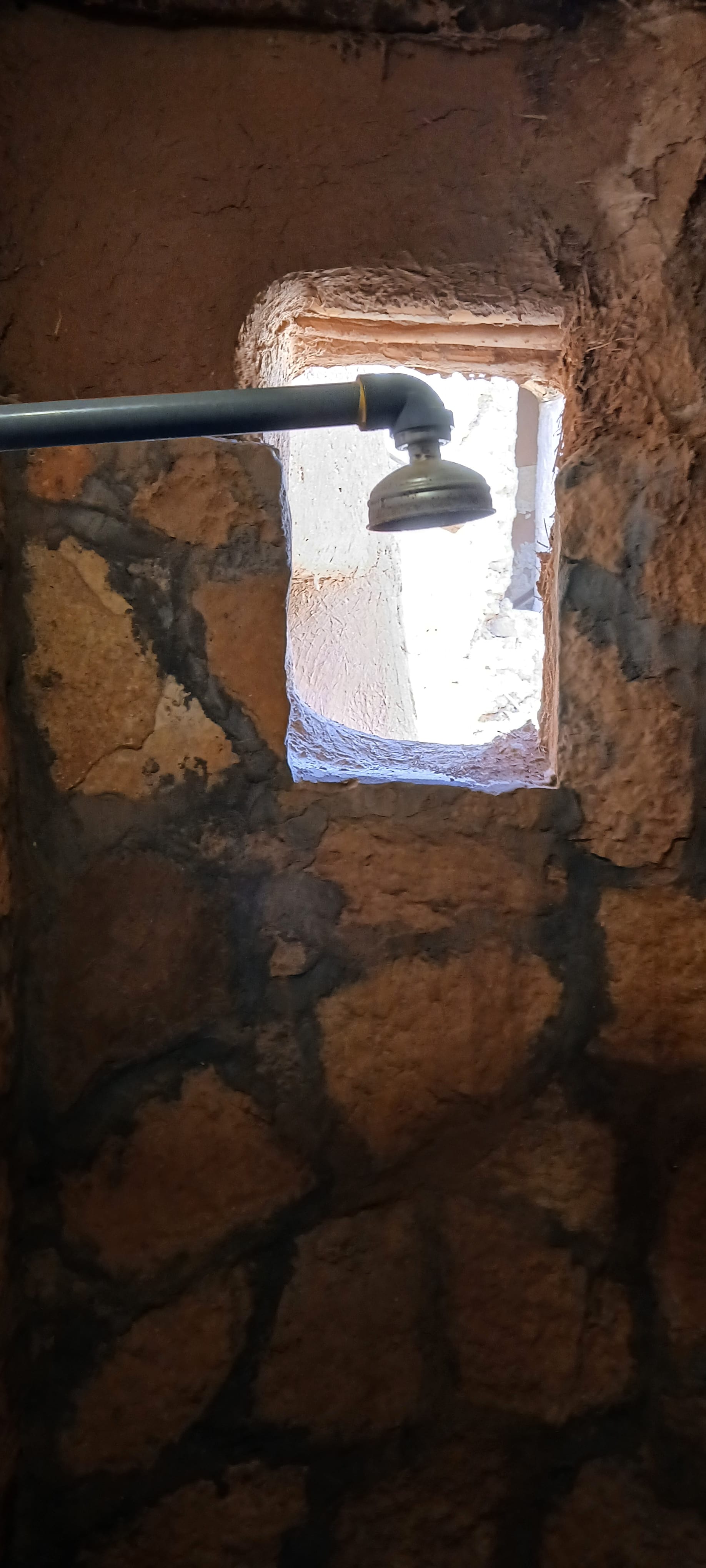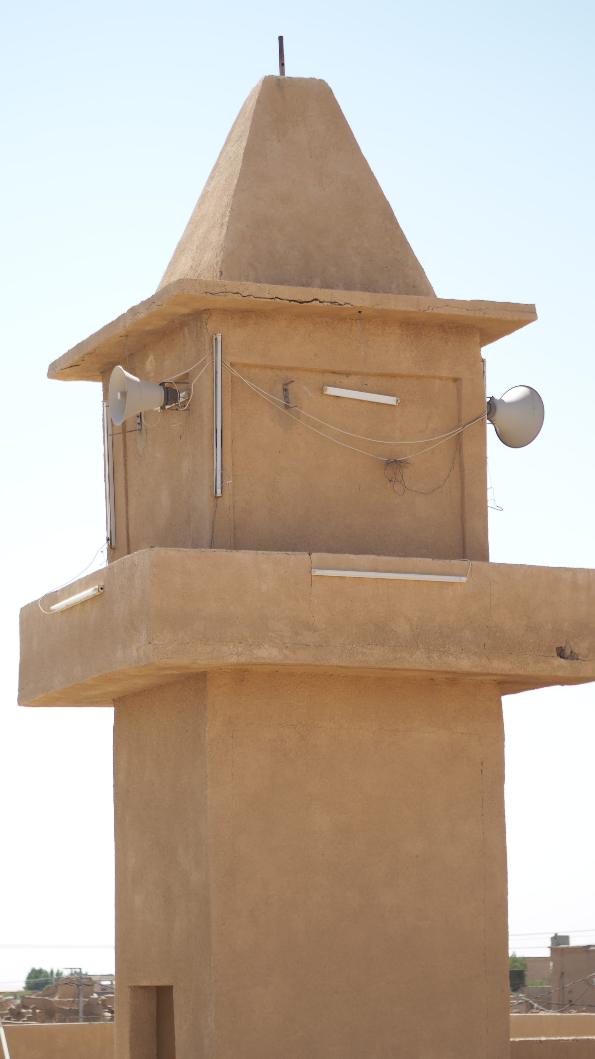 and a place of ablution by the mosque where the tall man from Würzburg and the short woman from Würzburg had somehow squeezed up the muezzin's tower, a picture below, from the entrance into which I squeezed and then luckily retreated, not knowing the top was plugged by the German couple . . . they had driven and were on their way to Riyadh, asked about . . . and we recommended Al Qasab and passed on Muhammad's recommendation of the salt flats, little knowing . . .