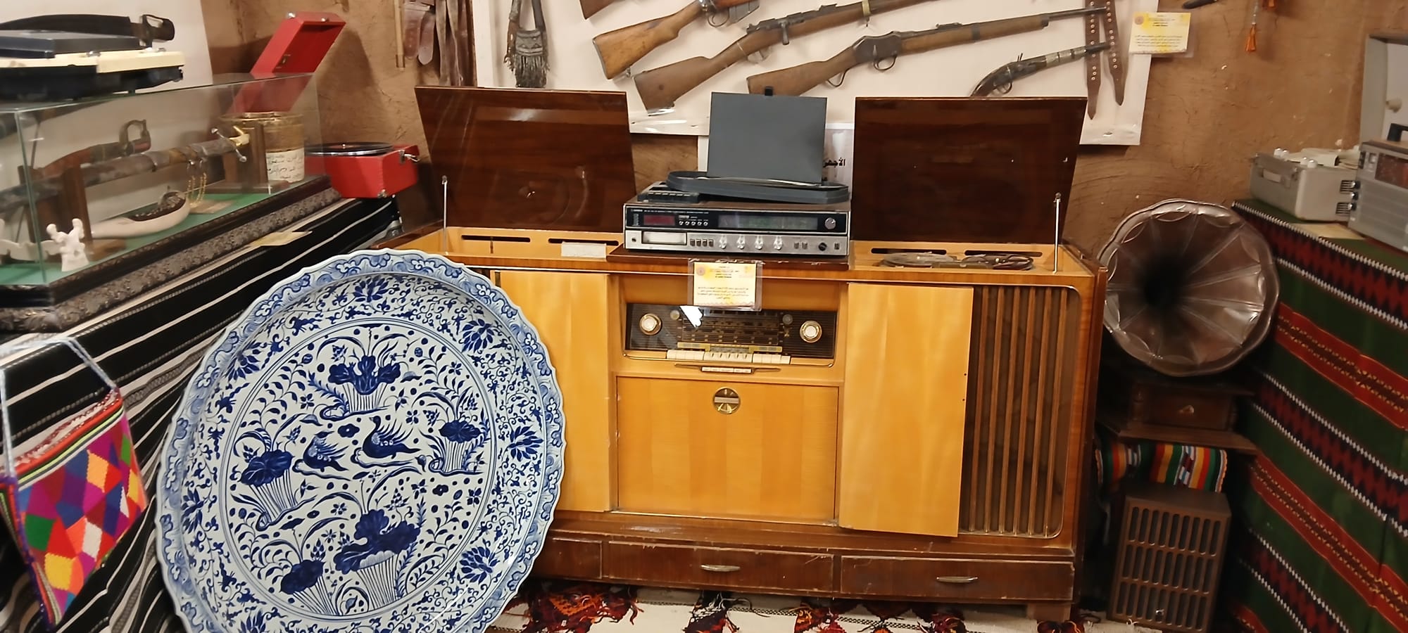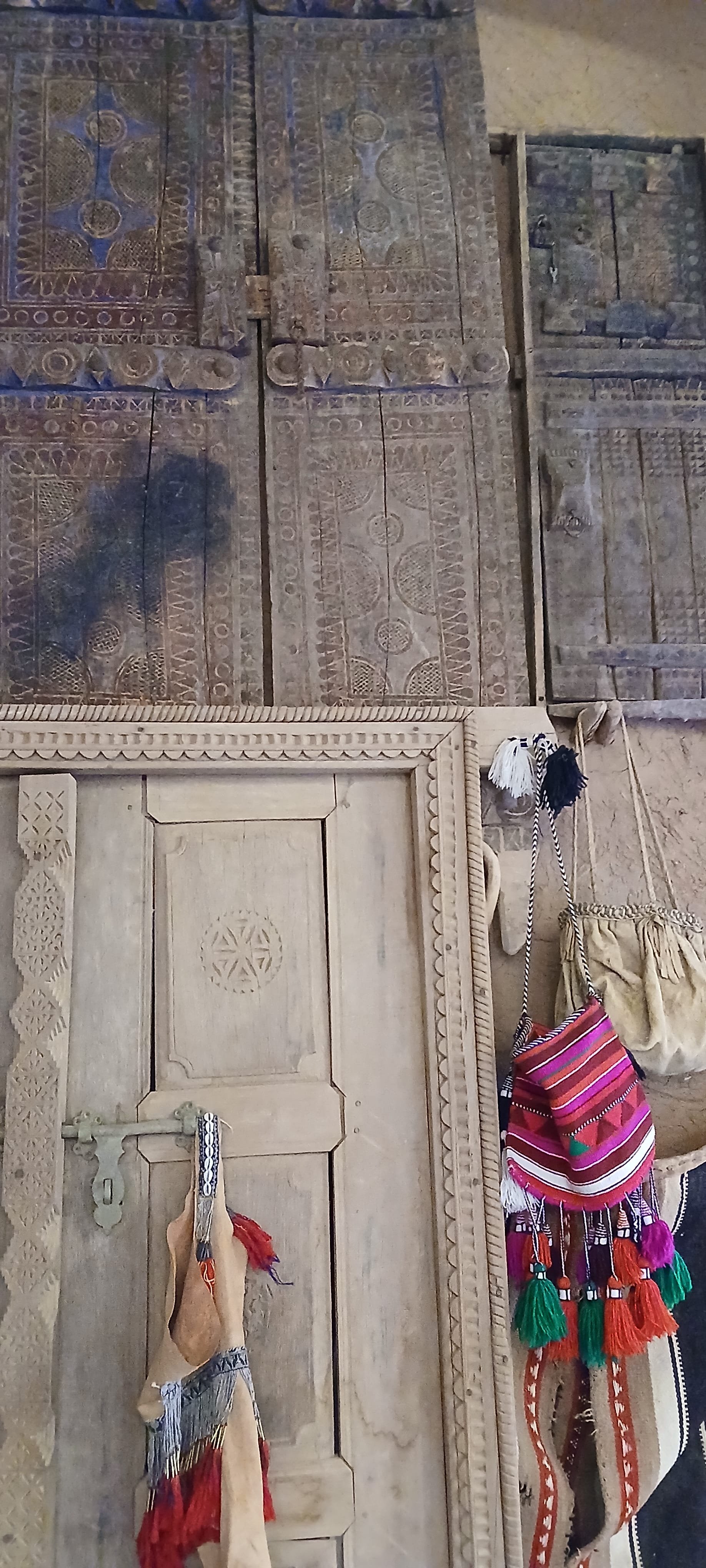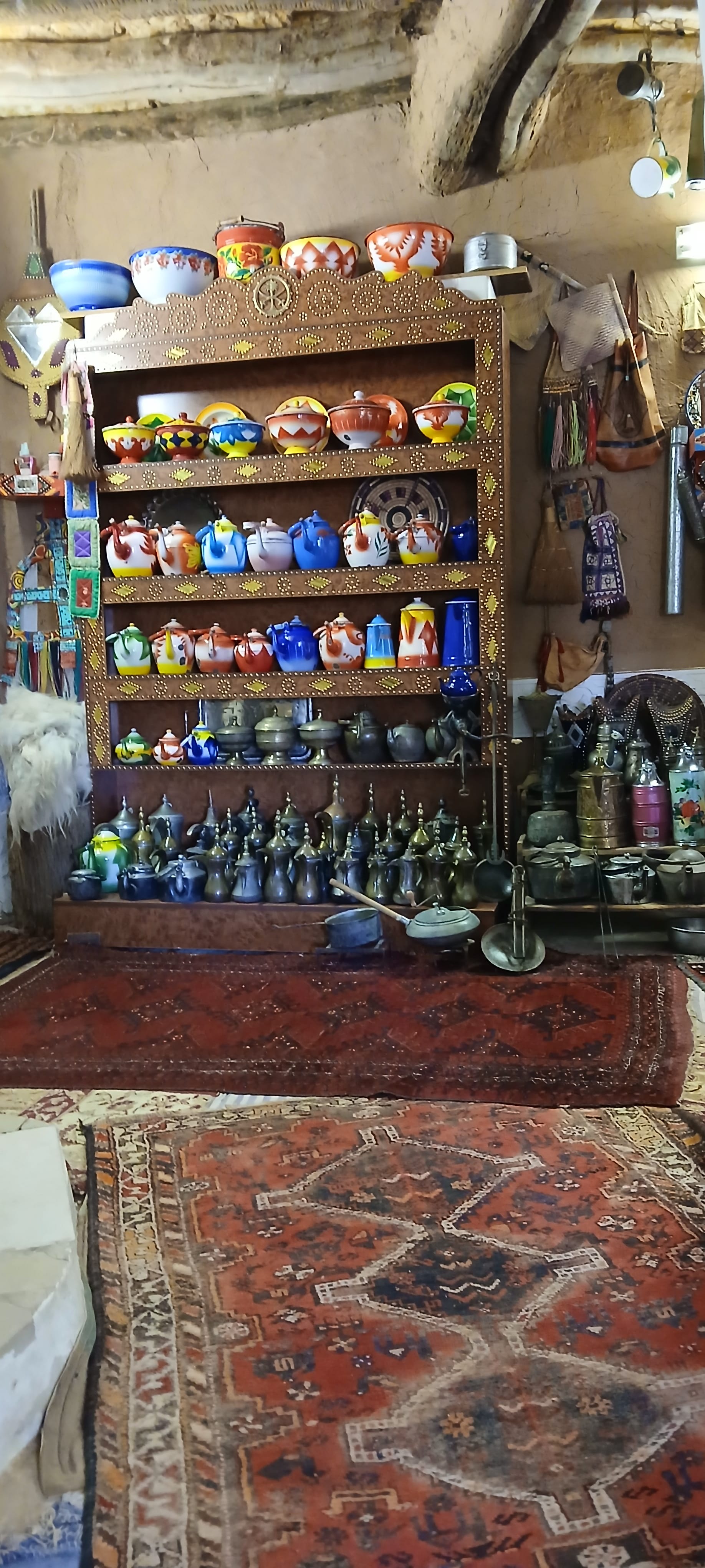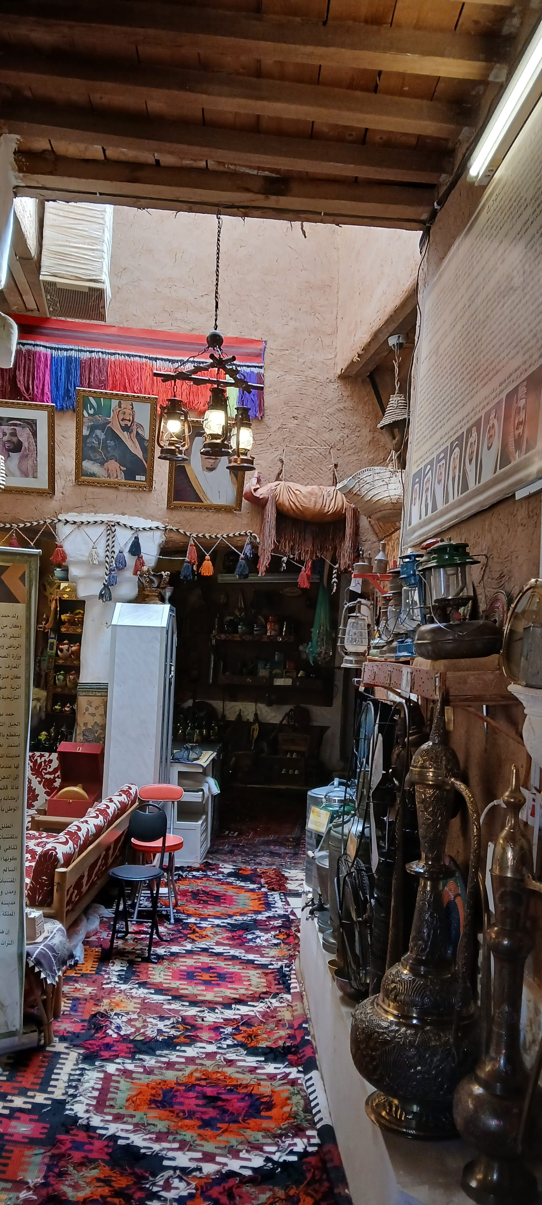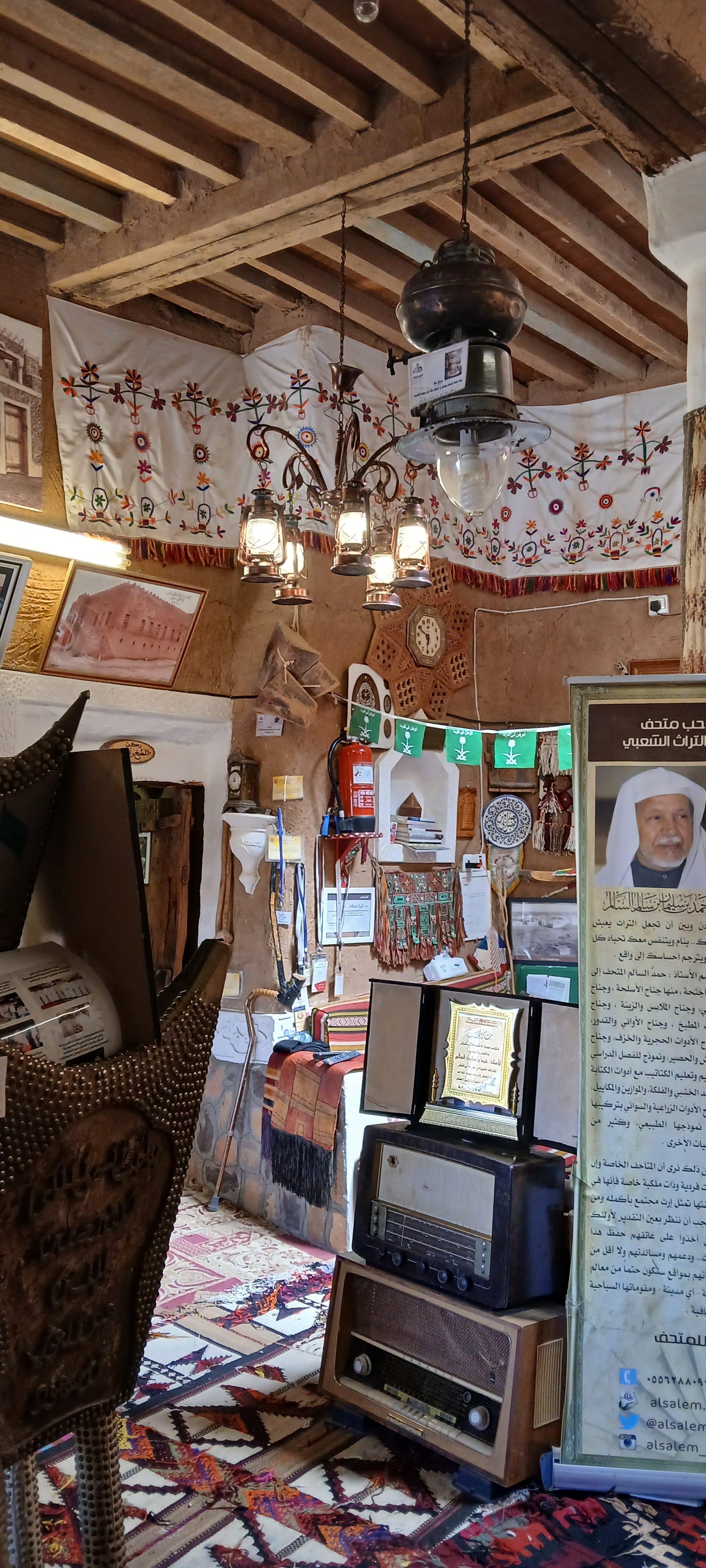 The town may have lacked charm but the museum made up for it, the elderly proprietor, and collector of everything in it, and his Yemeni sidekick did a double act, the old one saying something like, Have you told them about the Prince's gift?! And the younger man having to shout in his ear, OF COURSE I HAVE . . . AND ABOUT THE . . . but what about the Princess's shower?! . . . NOT YET . . . what?! . . . I SAID . . . what did you say?! . . . NOT. . . it cost a lot . . . I KNOW . . . of money to collect all these . . . I'VE TOLD THEM . . .what's that?! . . . and many years! . . . a whole life! . . . have you told them that?! . . . I KNOW, I TOLD THEM . . . you should have invited them for coffee! . . . IT'S TIME FOR PRAYER . . . what?! . . . PRAYER!!! . . . [to us:] excuse me for a minute for prayer . . . the younger man leading his elder into an adjacent room. It seemed to be the one with the stereo equipment in it and the King's serving platter, which in the tour which followed coffee being pressed upon us, and dates, with a water bowl for to rinse the dates obligatory (allegedly to rinse off the pesticides), our young impatient guide told us the weight of . . . he was full of facts and would stop beside an object and, before answering and moving swiftly on, What is this? . . . It's a mousetrap. . . What is this? . . . It's a baby carrier for a camel. . . . Can you open the cabinet? . . . You have one minute. And when he tried himself it took him at least 3, but it was clever.