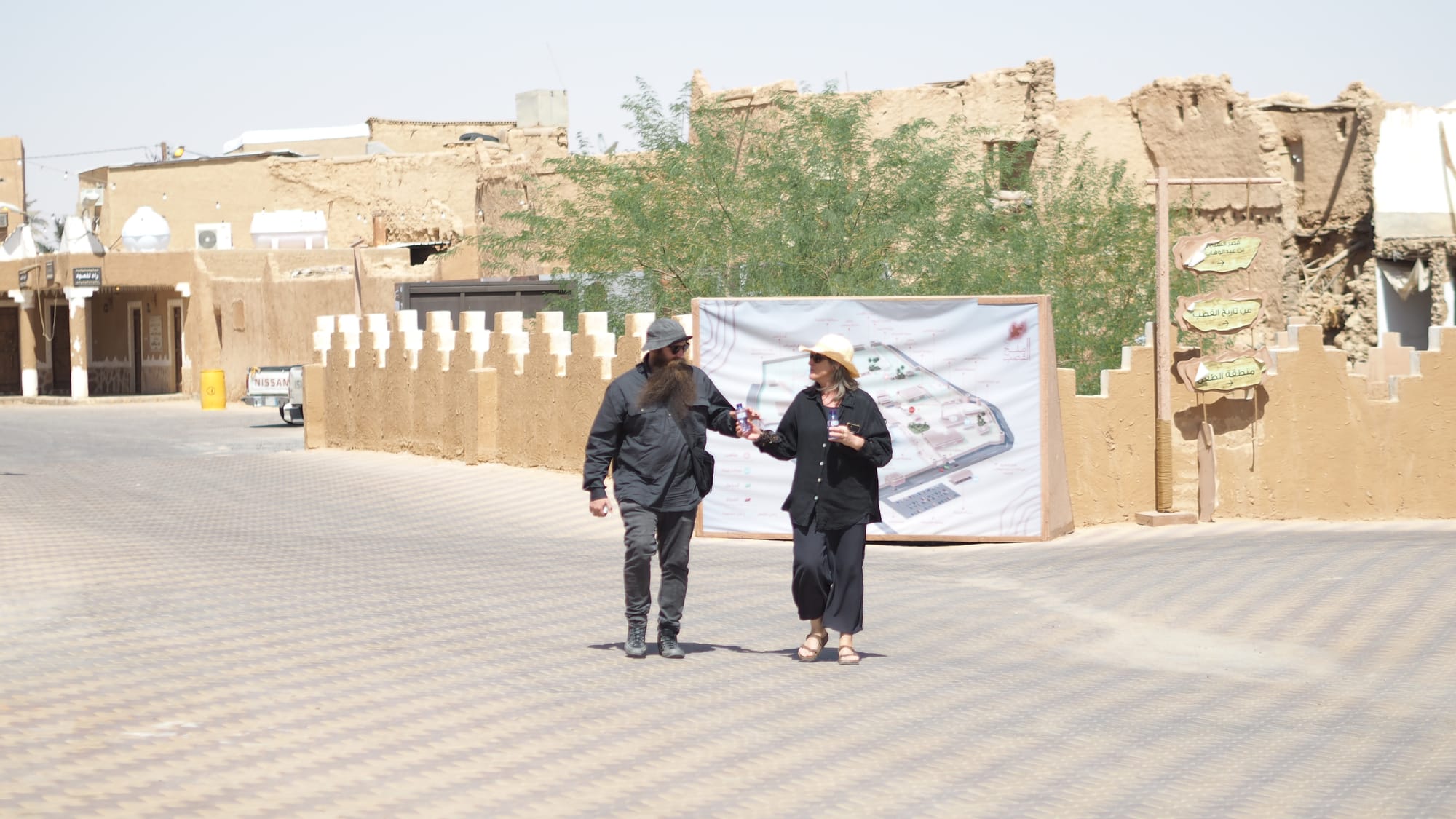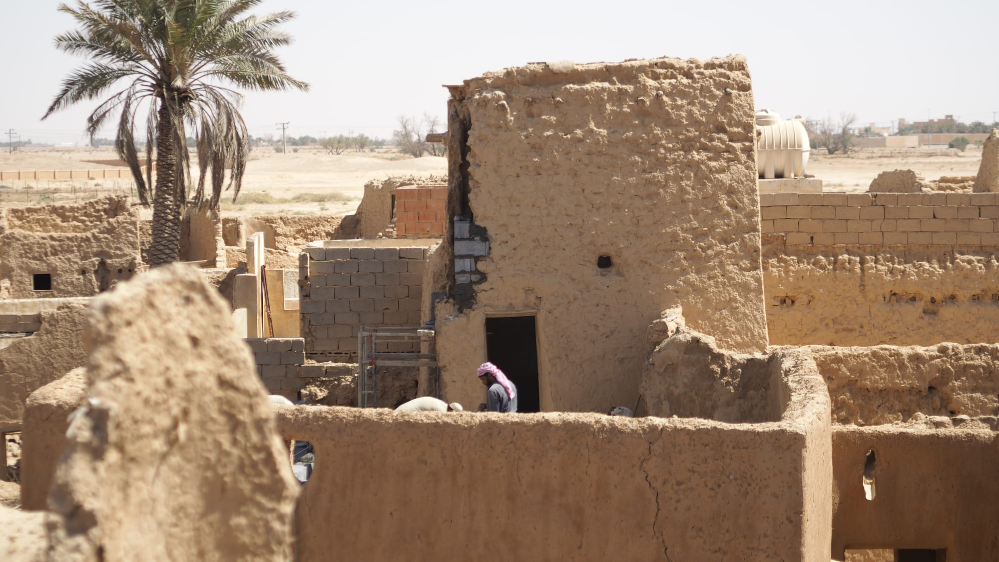 - in the interval, explaining the elevation from which shots 2–6 were taken, coffee at Muhammad's son-in-law's house, the roof, the workmen you see in shot 3 in one of his grandfather's four houses in Al Qassad; he was very proud of the first girl's school in Saudi being in the near vicinity. That's Miles with Jo, from Broken Hill.