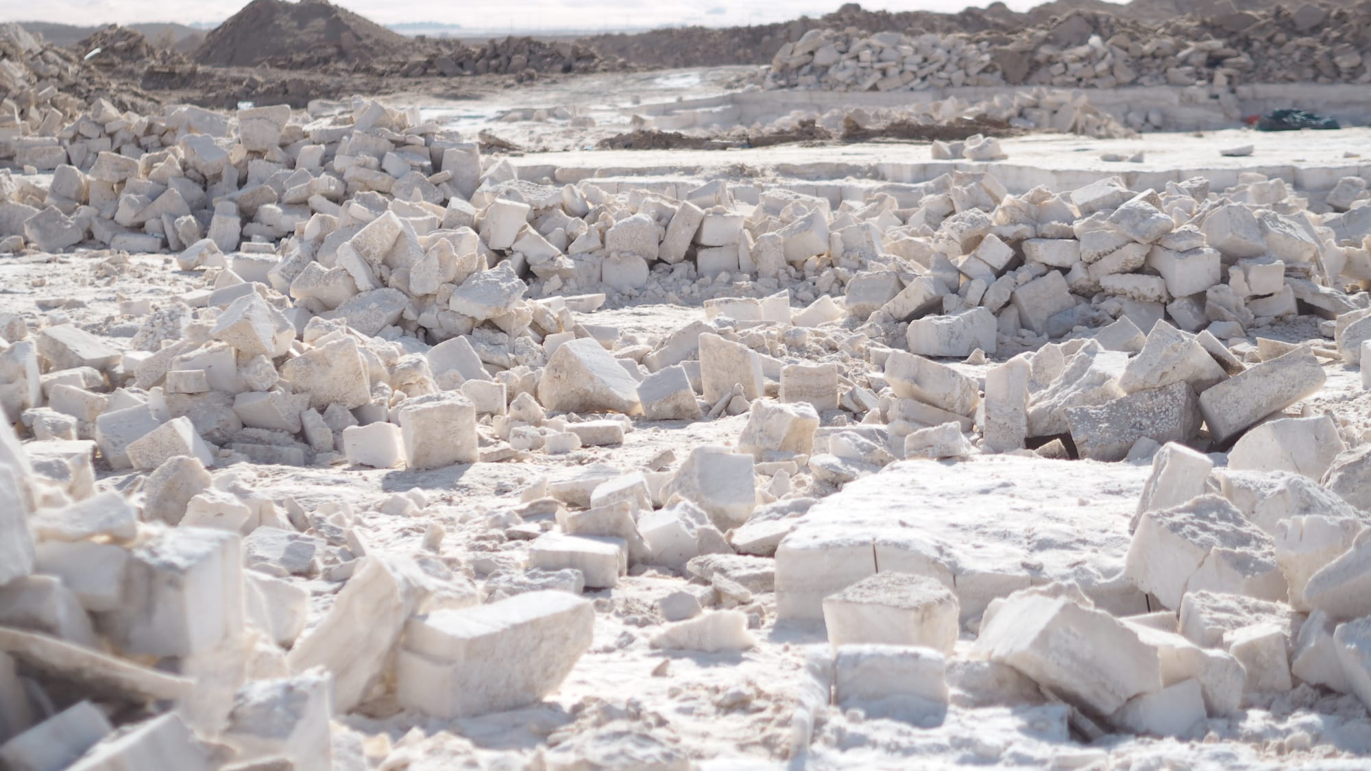 . . . and the road was long and dusty, but as directed by maps, we turned off to find the salt. It's Necessary, Muhammad had said. . . .and the side road was unsealed, a further road off that, potholed, taking us into dry piles of dirt and rocks and the dry drying flats, at first free of salt, into the wasteland. . . remonstrating, This can't be right. . . Should I turn back? . . .Was it the other road? . . .Surely this isn't the way! . . .And, as we approached some heavy machinery, we stopped, turned the car around, climbed over the mound separating us from the flats and found. . .