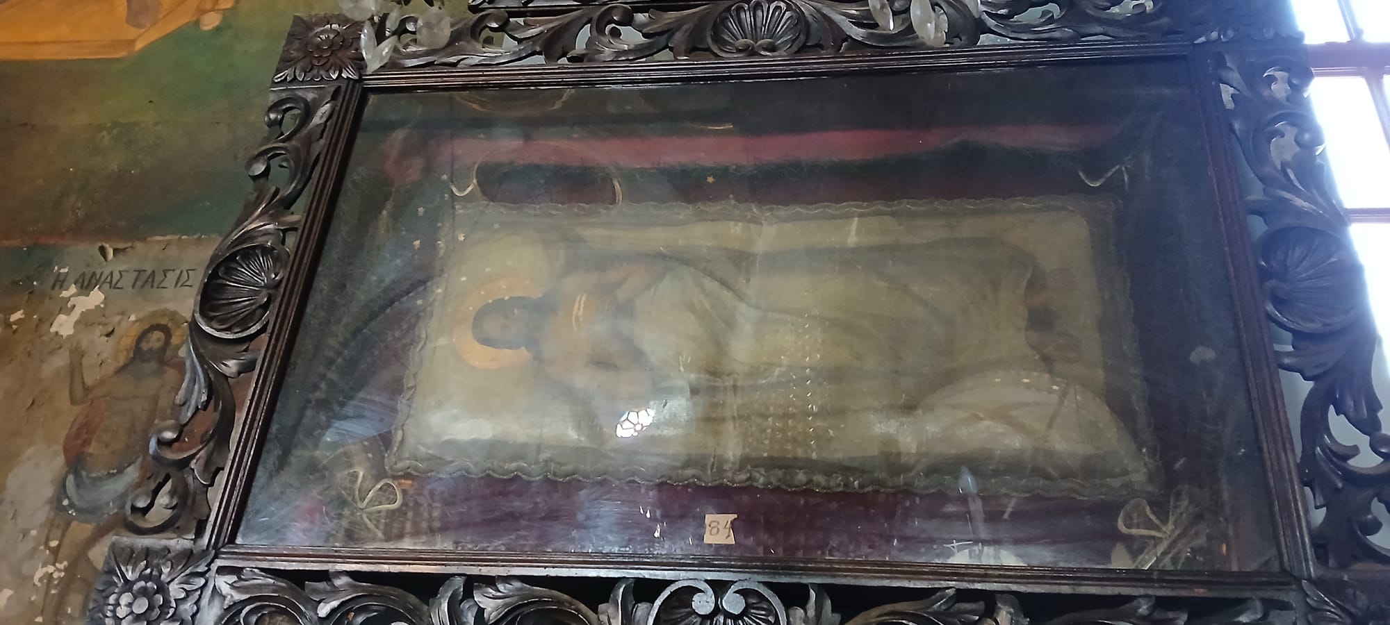 Neither did we get to the orphanage, pictured above. Reputed to be the second largest wooden structure in the world, it's in a state of collapse and sits . . . on the second highest hill in Prinkipo or Büyükada, because we climbed the highest, whence the photos of the endless arm of the city and the boats, the ginger cat and the dog, and Christ recumbent painted on his pillow, below, were taken. Christ, because on the top of the hill is the Monastery of St. George, Greek Orthodox, or Aya Yorgi Kilisesi, built there legend has it because a shepherd boy heard bells from underground and found an icon of St. George (what explains his popularity and his cultural reach?); and we went in . . . but that was after the struggle up the hill pushing bikes because the bikes we'd hired were, as I later impatiently explained to the hirer, pieces of shit.