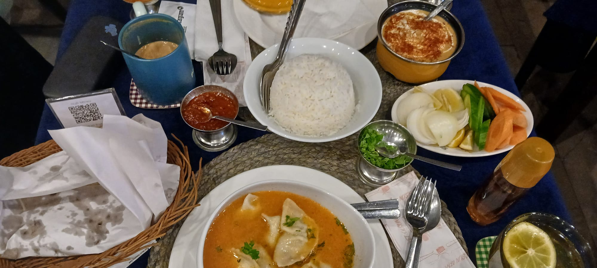 We'd promised ourselves dinner at the local Himalayan. This proved not to be the budget-friendly option we'd expected. Ordering only momos soup and dahl, preceded by freeby clear broth, the tastiest ever, followed by freeby sweet assortment, we still paid €56. Can't even blame the drinks, although the masala tea in the blue vessel and my mint-packed lemon-garnished beverage were a little overpriced; then, what price our Tibetan memories of İstanbul?