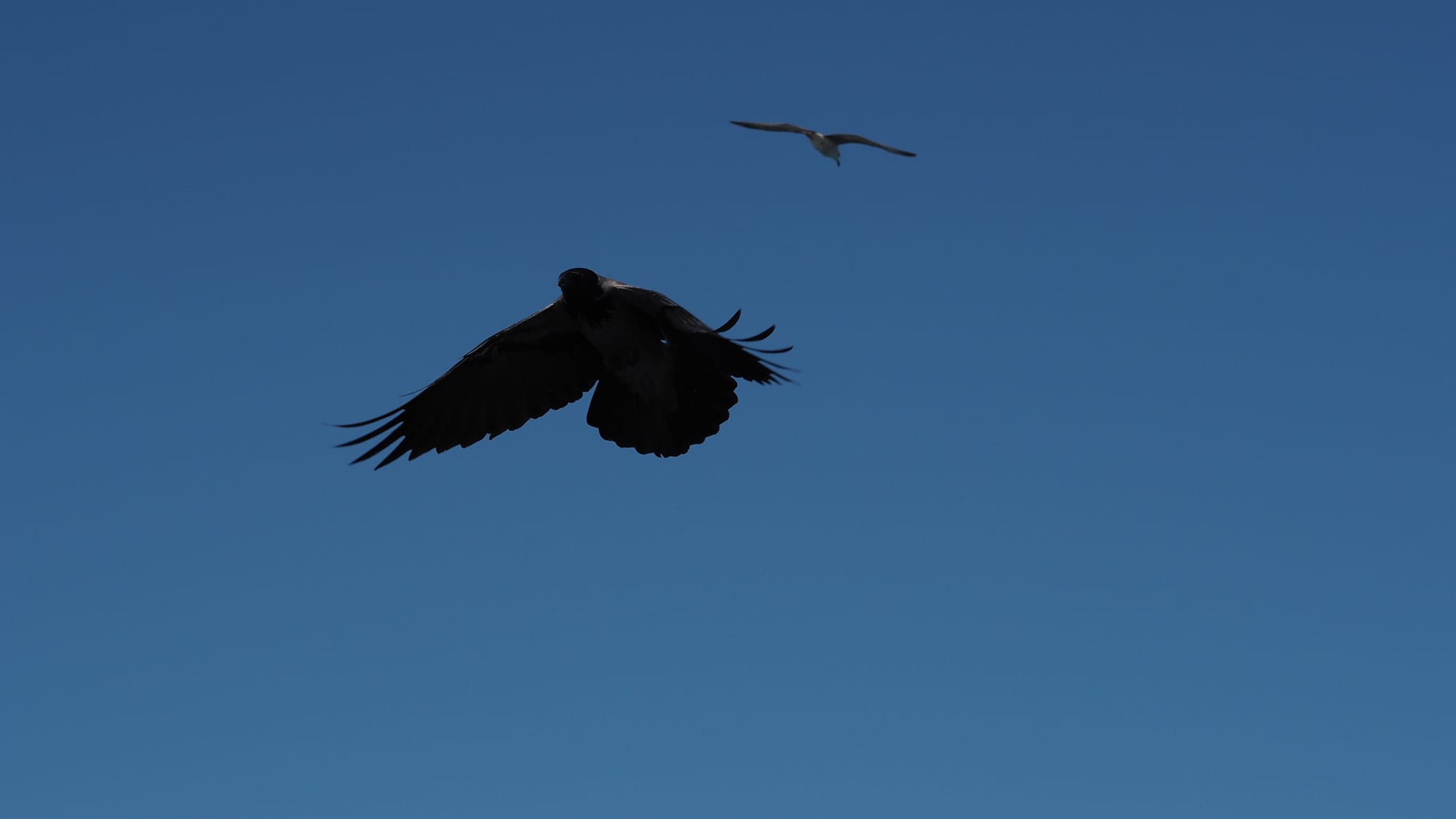 Among the birds was a crow (see above). It sat on the roof of the ferry, cadging a ride, coming out when the food was on offer and competing with the gulls, huge, Pacific-sized, and what I thought of as tern-analogues, which are in fact Common Terns.