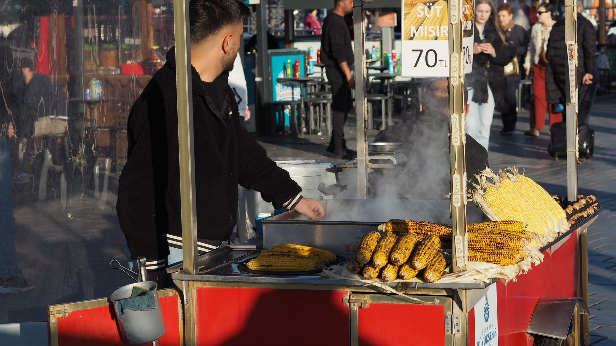 - not our ferry, happy fellows; never saw anyone eating the corn, the chestnuts, yes