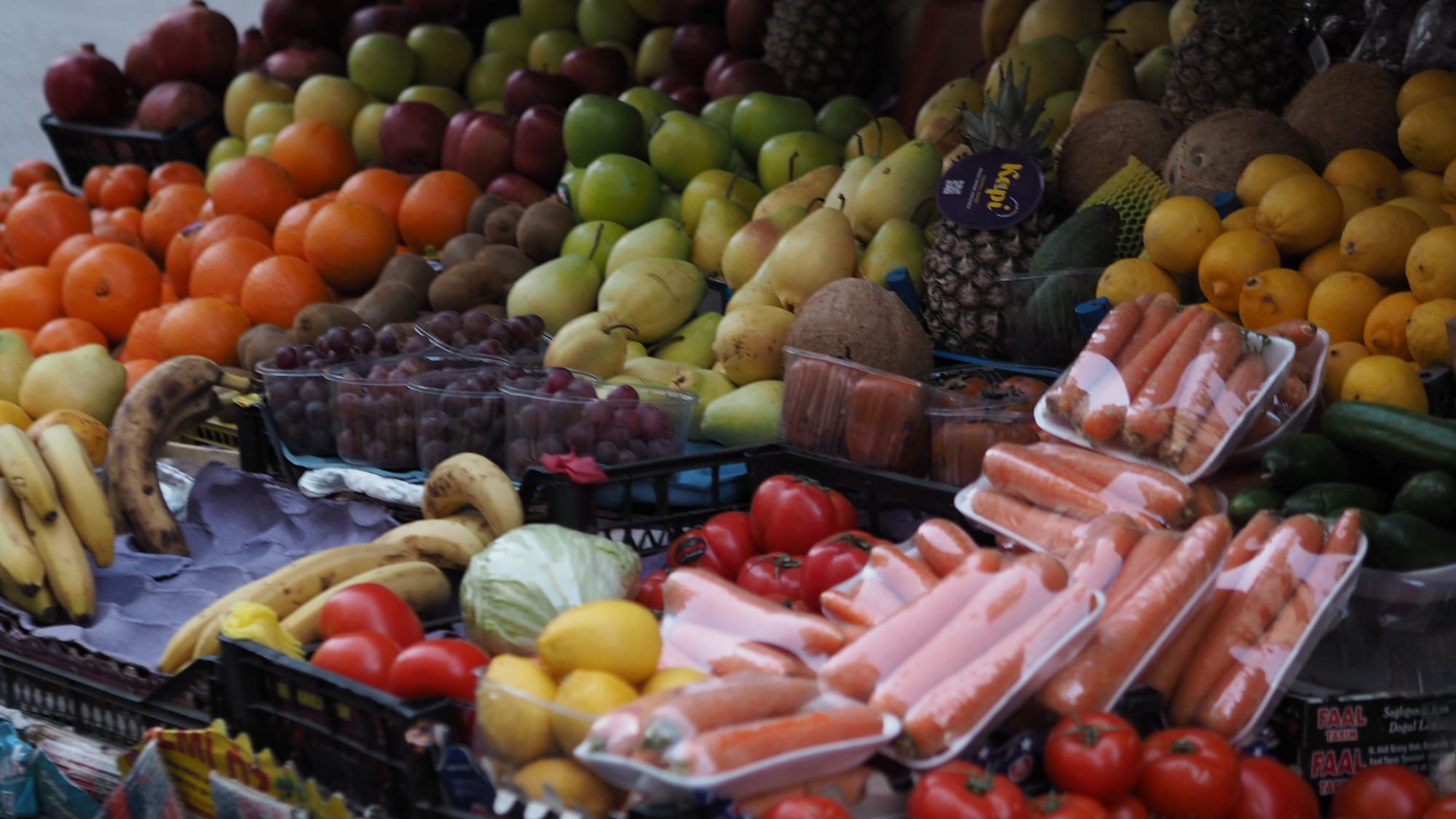 Taxi to our air bnb had to drop us off, the streets blocked by a produce market, good looking veges in tidy stalls on the steep streets, which grew steeper, the low-rise apartment buildings leaning against one another, some on the point of giving up, others having already given up and yet others staring vacantly, the ice wind whistling through.