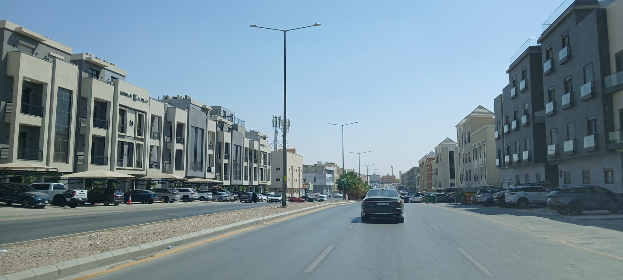 We were nearing Boulevard City & World when the opportunity came to swing around . . . and retrace our route, all the way back again, not however to the underground parking at an apartment building. . . to the hectares of acreages of parking around Al-Awwal, parked up, directed by an usher (see previous post), often just kids, usually North African, to the bus. . .