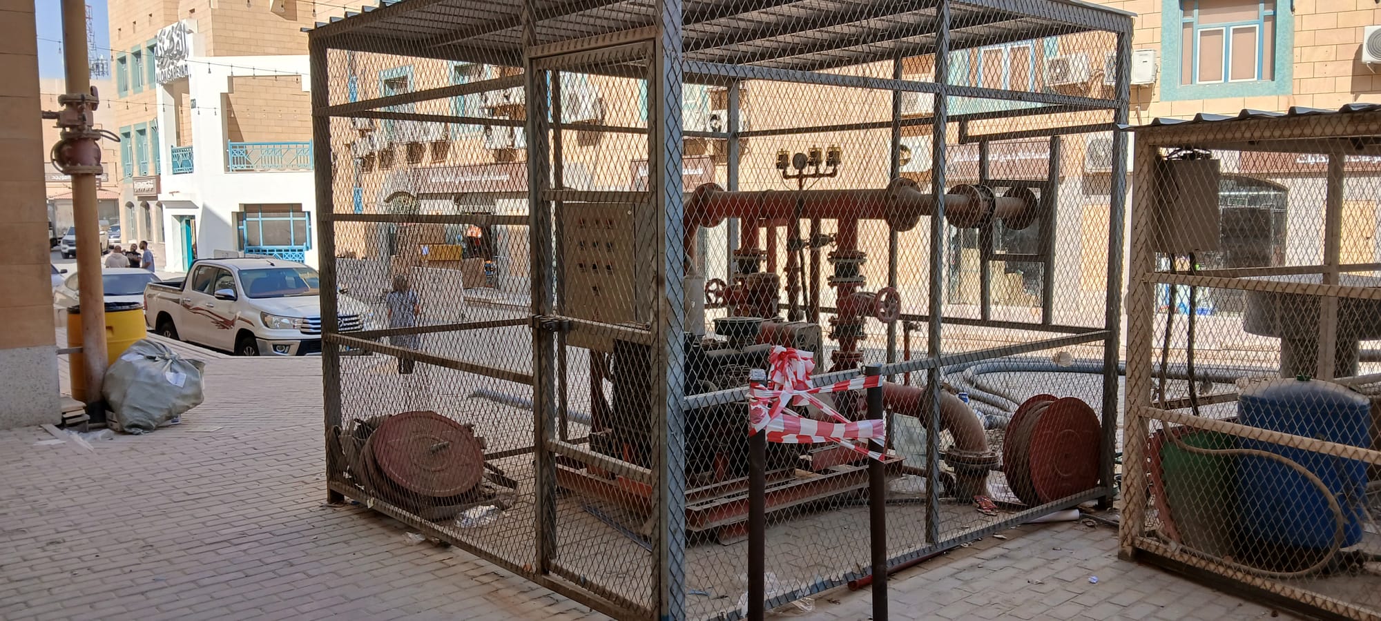 Security guards were gathered around a vehicle and the first person we asked and showed our photos to as the only clues we had deferred to a guard who answered in Arabic to the effect of, I don't have time for this, I've a job to do. And our interlocutor pursued, then relented, pointing, saying, down there, and to the left. Another set of officials approached and it seemed that cars left behind were being clamped. This raised the stakes of the game.
