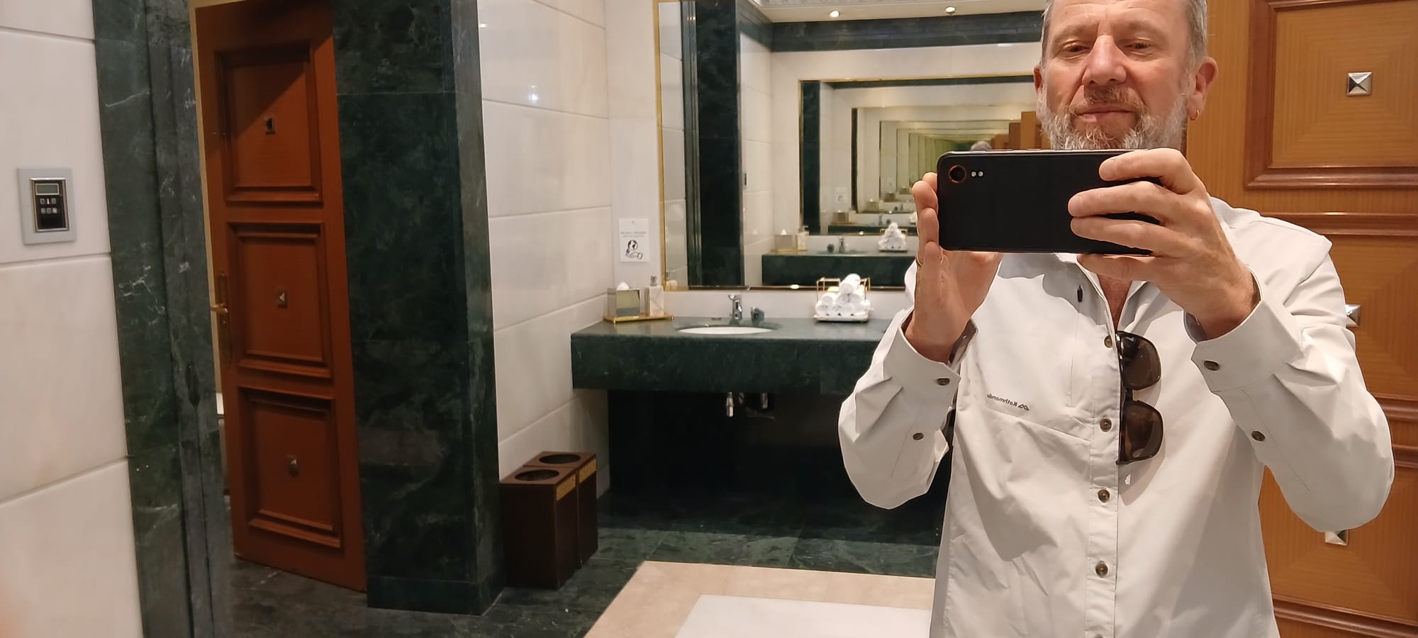 Then, for real. All went as expected, a consultation required, details revised, not too shabbily, the place clean and thankfully without muzak of any kind. After the Saudi German doctor, which sounds exactly as he appeared, an over-serious medical zealot who resented any interruption, a docsplainer. His head overlarge, his hands oversmall, he directed us to the next station and the next after that was on another floor, the phlebotomy department. It shared the floor with the psychiatric clinic. There we waited, having been issued a number. . . a long long time.