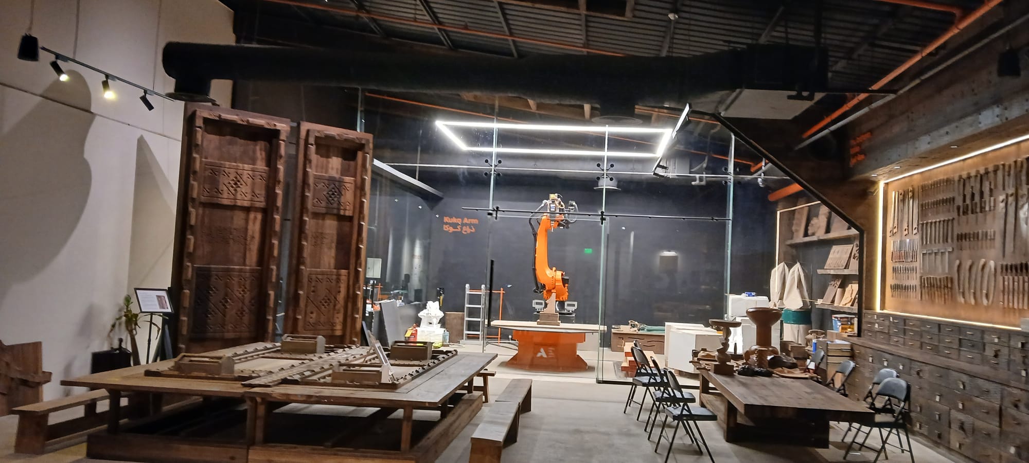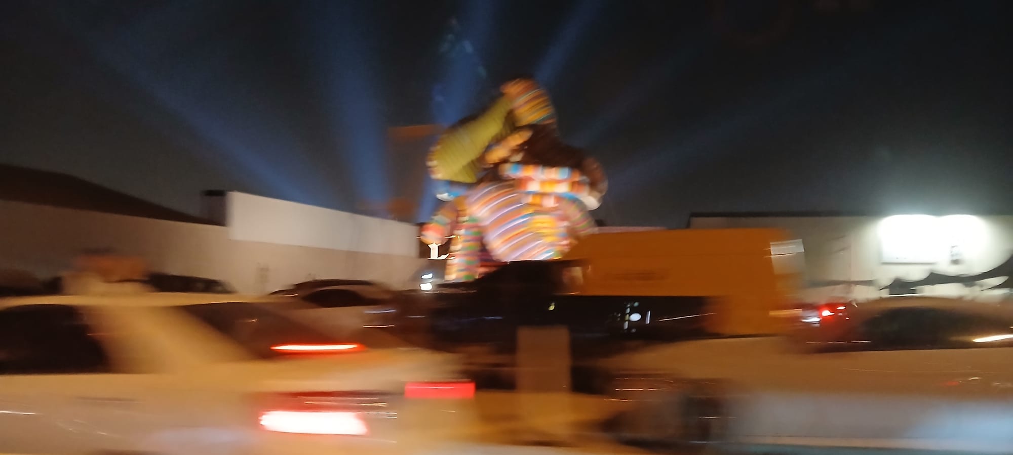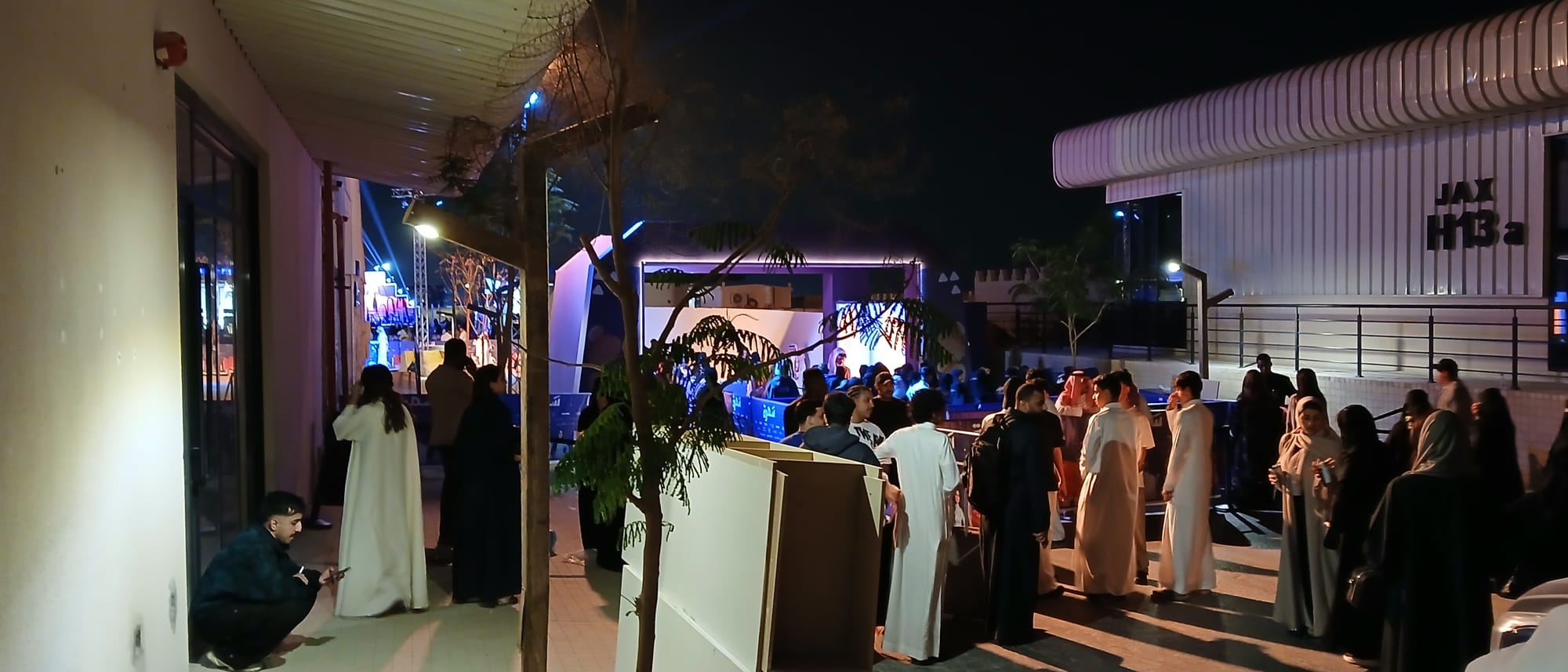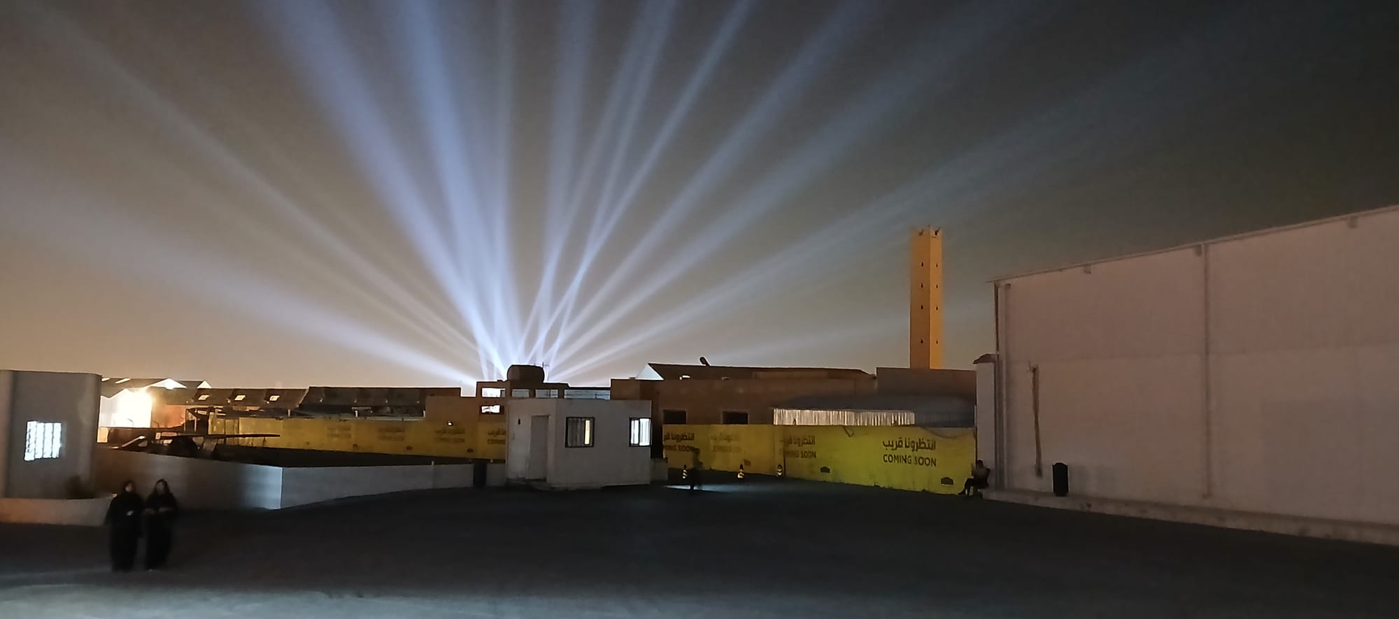and took off to JAX District, home of SAMOCA (Saudi Arabian Museum of Contemporary Art). . . searchlights fanned out announcing something going on . . . was an exhib, there's a special word I'm trying to capture, it mixes together exhibition and exposition. . . Australia has fireworks; KSA likes lights, Speer-like cathedrals, to the extent, which we will come to, that there is an annual festival of lights called نور الرياض, Noor Riyadh.