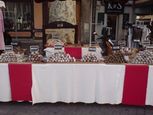 Leaving L’Isle-sur-la-Sorgue was again difficult, because of course we’d not really got to know our hosts, C. B. and M.-C. R. And we hadn’t really got to know our town, but we spent the morning, until midday, scooting around, over the canals and past the water-wheels, using the internet access at Geco, waiting for Q.’s photos to be printed. For some reason they had not been already. And checking out the small market, produce and clothes, which we’d not expected to find.
